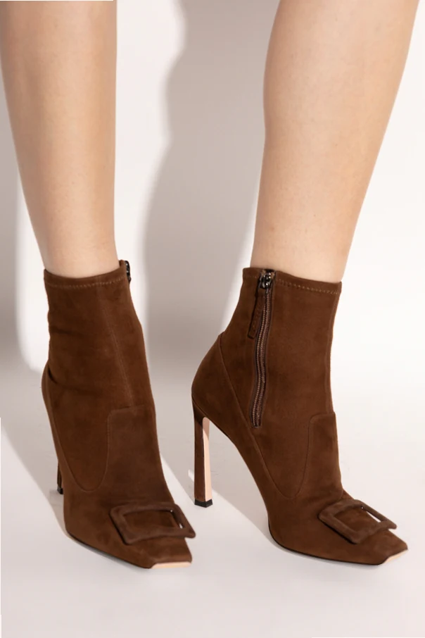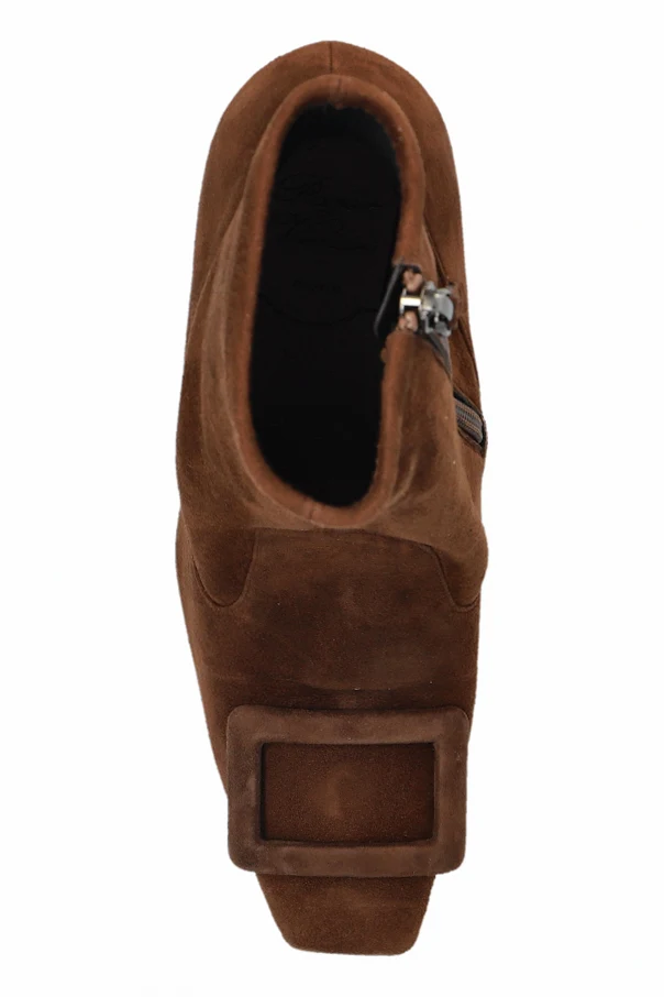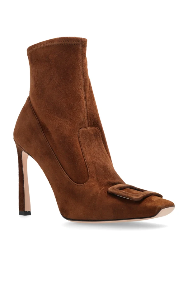 A signature oversized suede rectangular buckle adorns the toe, providing a notable hallmark of the collection, while the absence of overt branding ensures a discreet yet instantly recognizable profile. The hue-matched side zipper allows for effortless wear, and the interior is impeccably finished, contouring perfectly to the ankle for supreme comfort.
