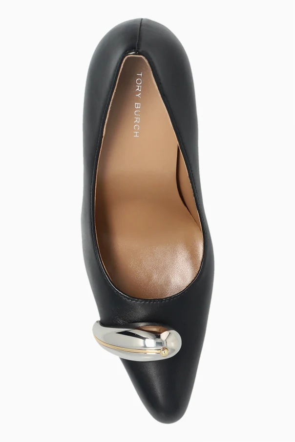 Step into a new echelon of refinement with the Burt on Heel ‘Pierced XL’ by Tory Burch . This iconic pump captivates with a classic, closed silhouette featuring a softly almond-shaped toe and a gracefully curved block heel—an impeccable synthesis of timeless allure and contemporary flair.