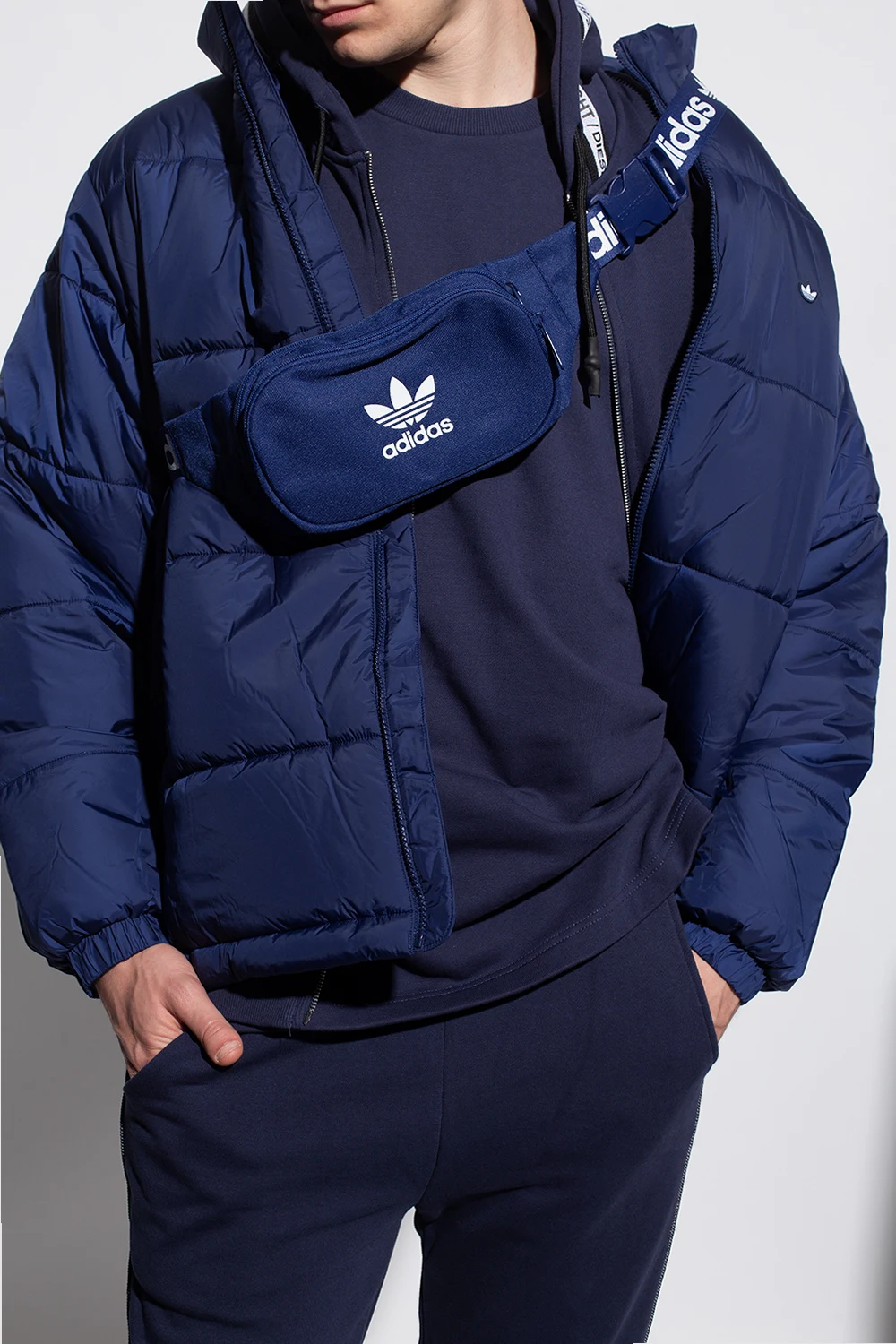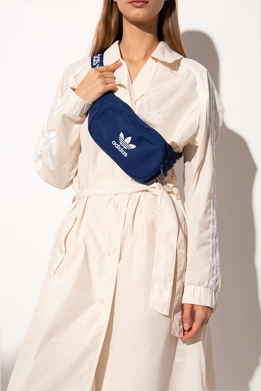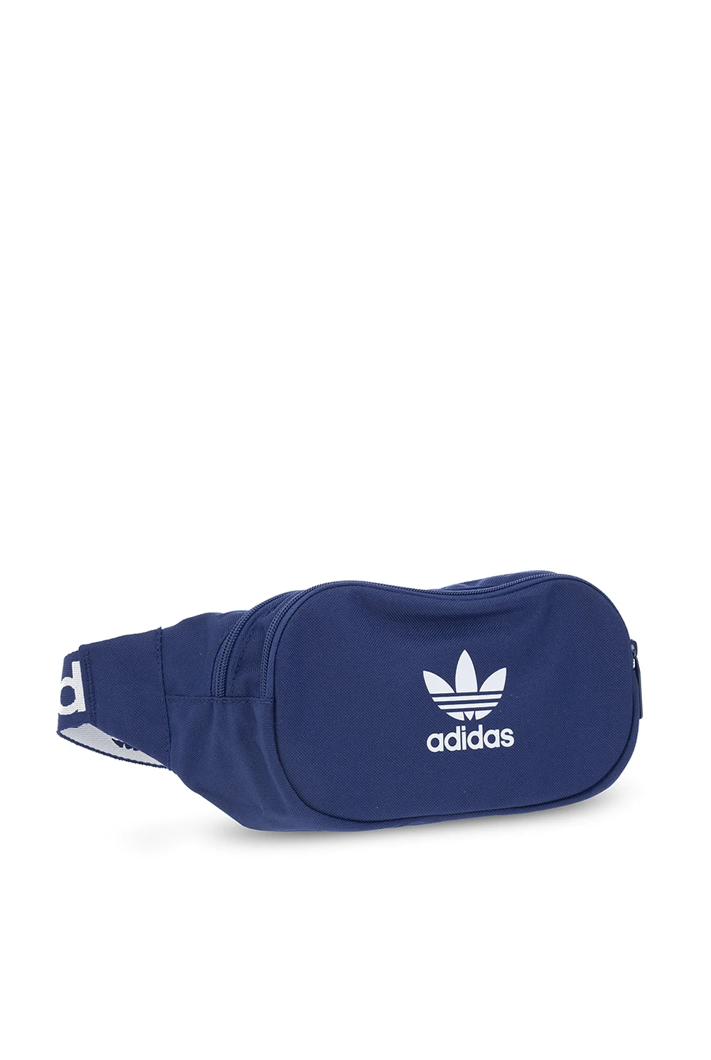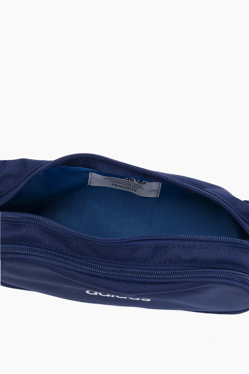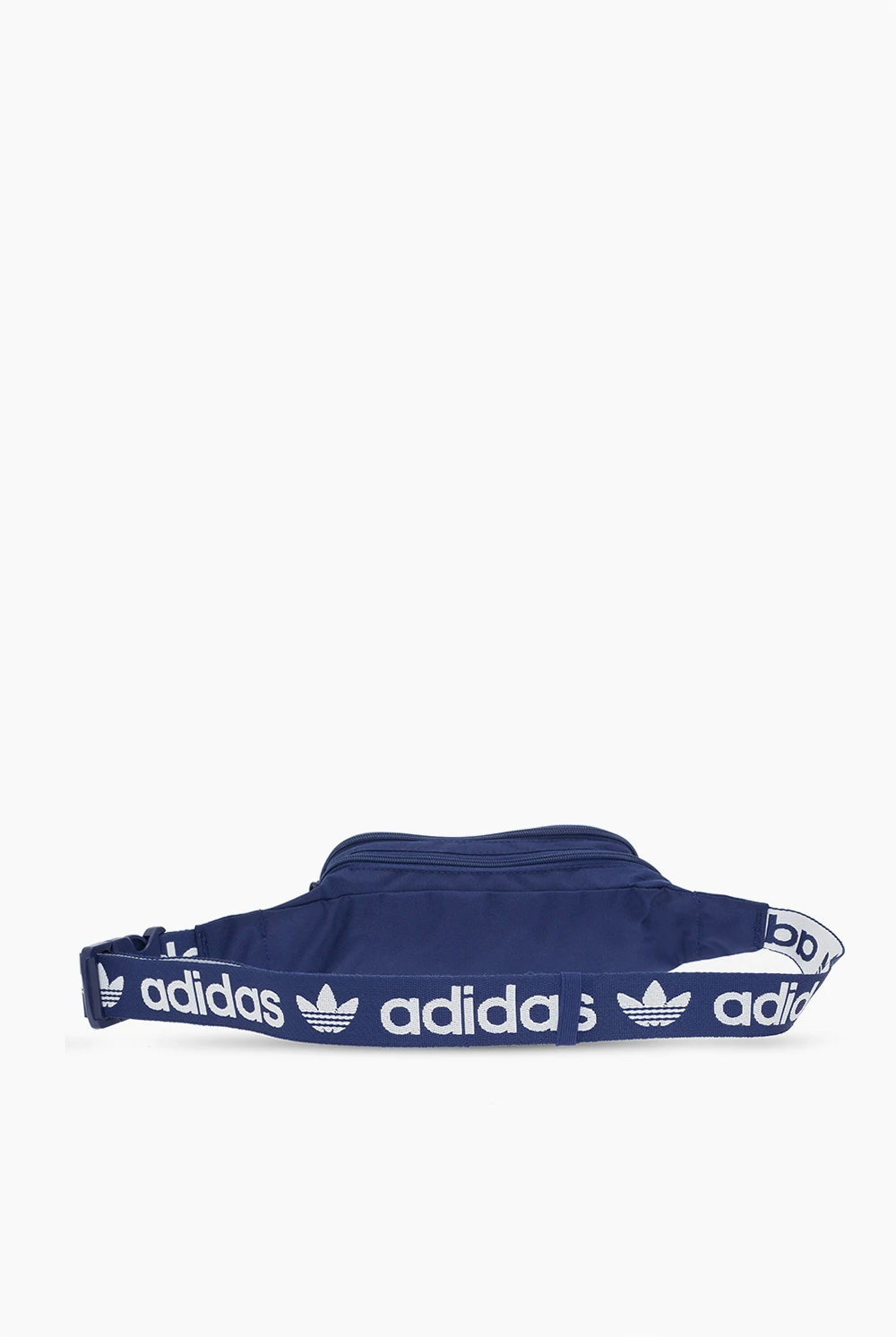 Navy blue belt bag from ADIDAS Originals, the ‘Primegreen’ line. Printed at front with the brand's logo in white, this item features a zip fastening, a zip pocket on the front, an adjustable strap with a buckle and one internal compartment. Primegreen is a line that uses recycled materials in the production of high-quality products.