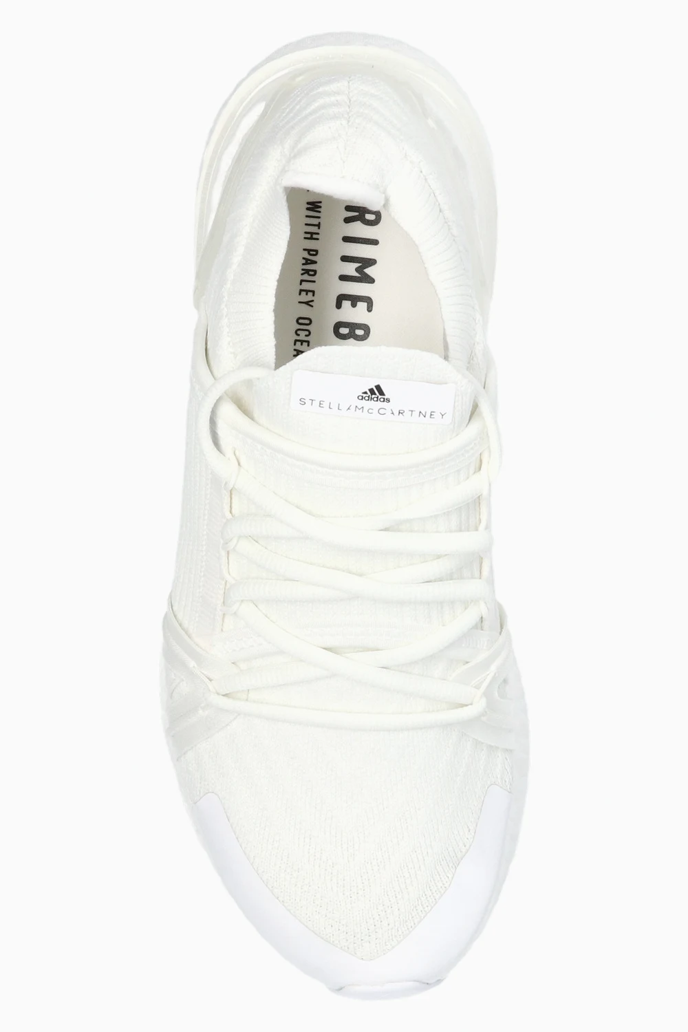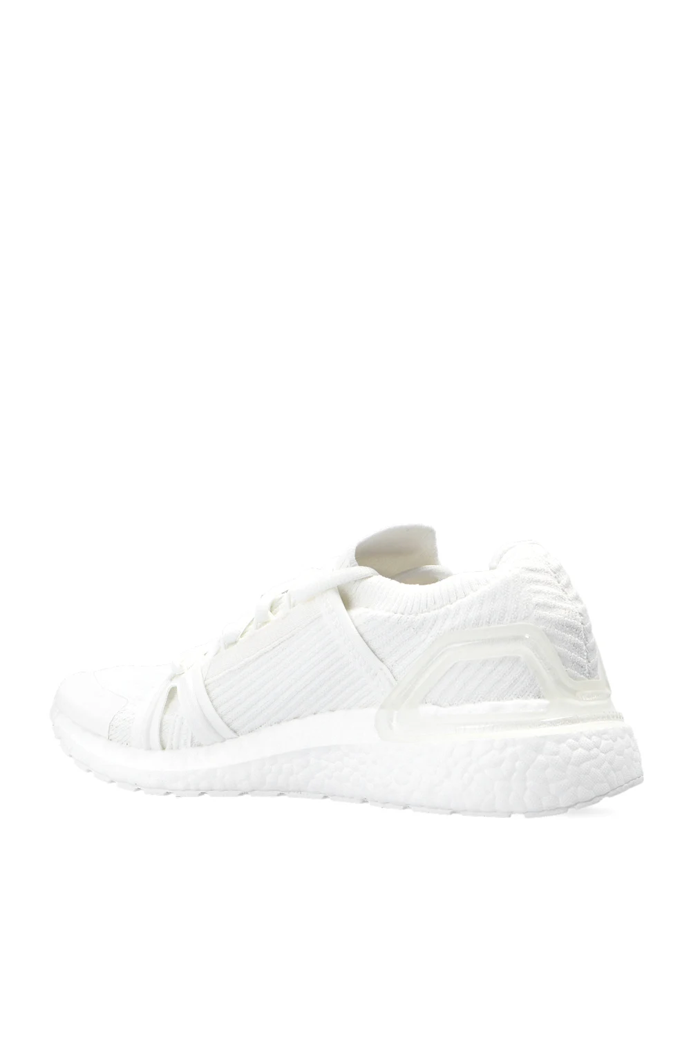 White ‘UltraBOOST 20’ sneakers from ADIDAS by Stella McCartney, the ‘Primeblue’ line. This lace-up model is decorated with a logo appliqué on the tongue, Boost midsole and a Continental™ rubber Stretchweb outsole in white. Primeblue is a performance fabric made with Parley Ocean Plastic, which is created from recycled plastic waste intercepted from beaches and coastal communities before it reaches the oceans. Products made of Primeblue contain a minimum of 40% recycled material in total.