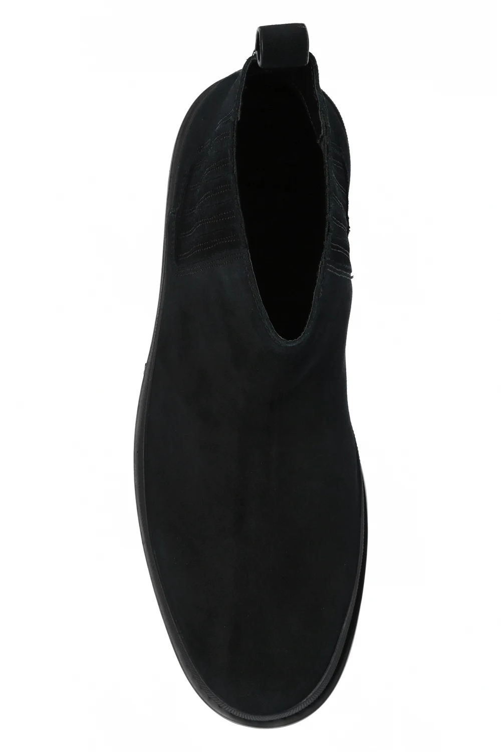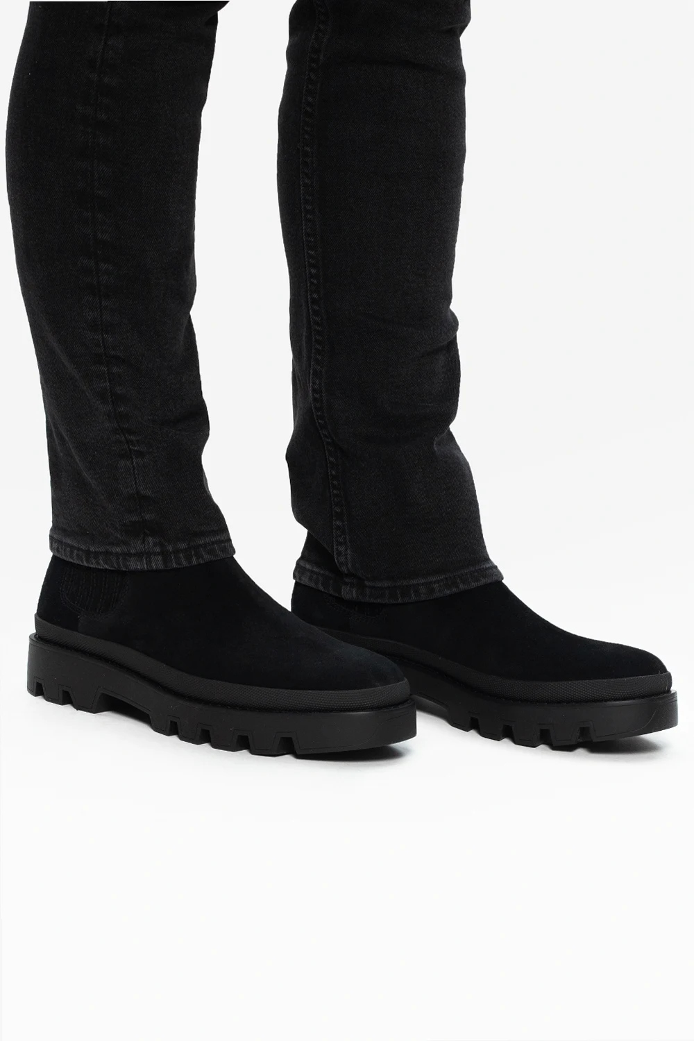 Black panelled platform shoes from Michael Michael Kors. Crafted from suede, this slip-on design rests on a black rubber sole.