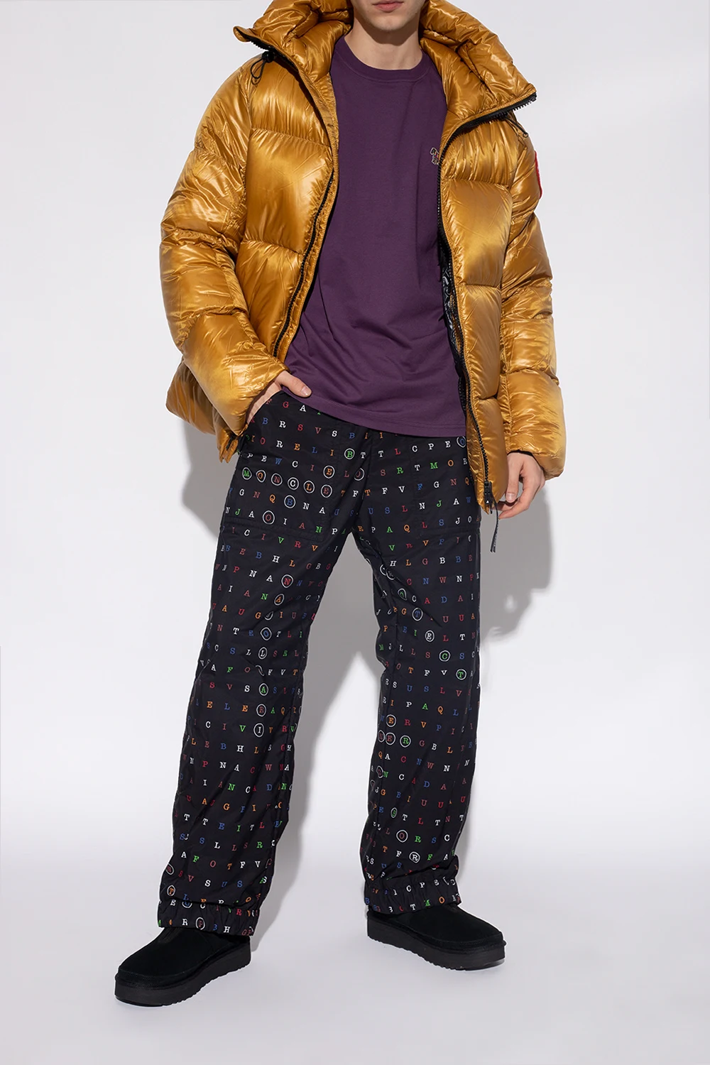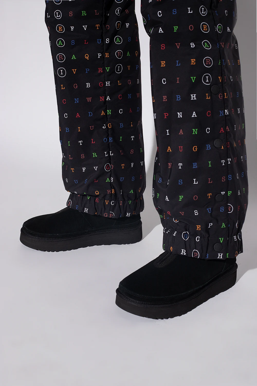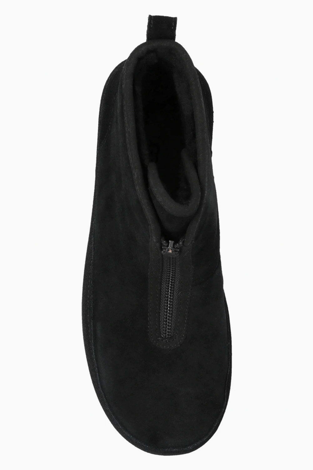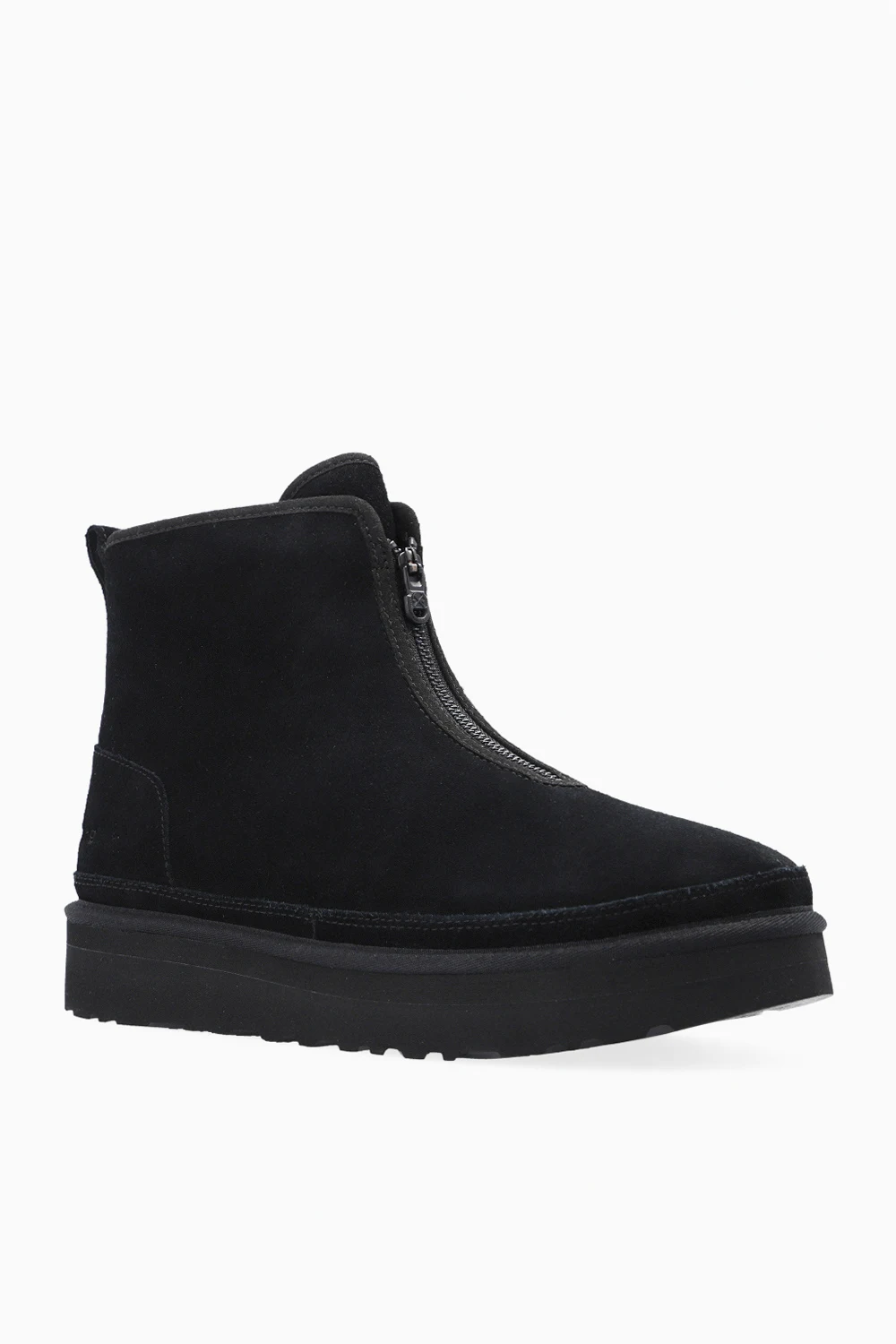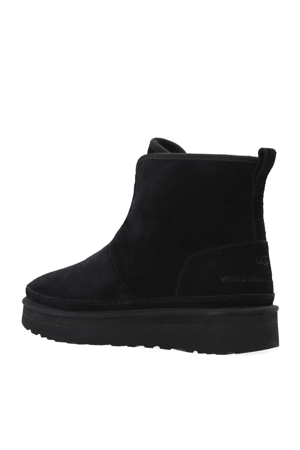 Black ankle boots from UGG x White Mountaineering. Made of cow leather, this model features soft padding, an embossed logo and a black rubber sole.