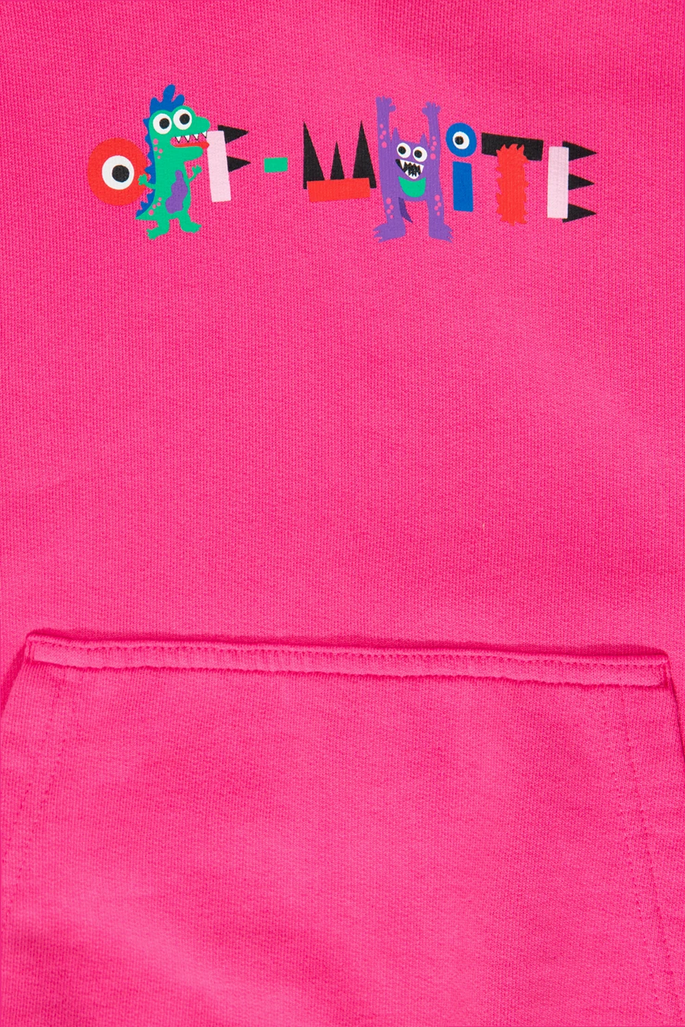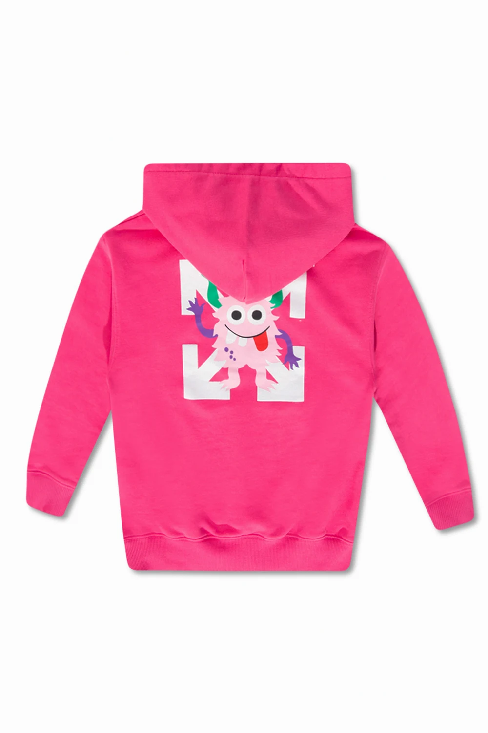 Pink hoodie from Off-White Kids. Made of cotton, this long sleeve design features a multicolored logo print, monster motif, front pocket and ribbed trims at the hem and cuffs.