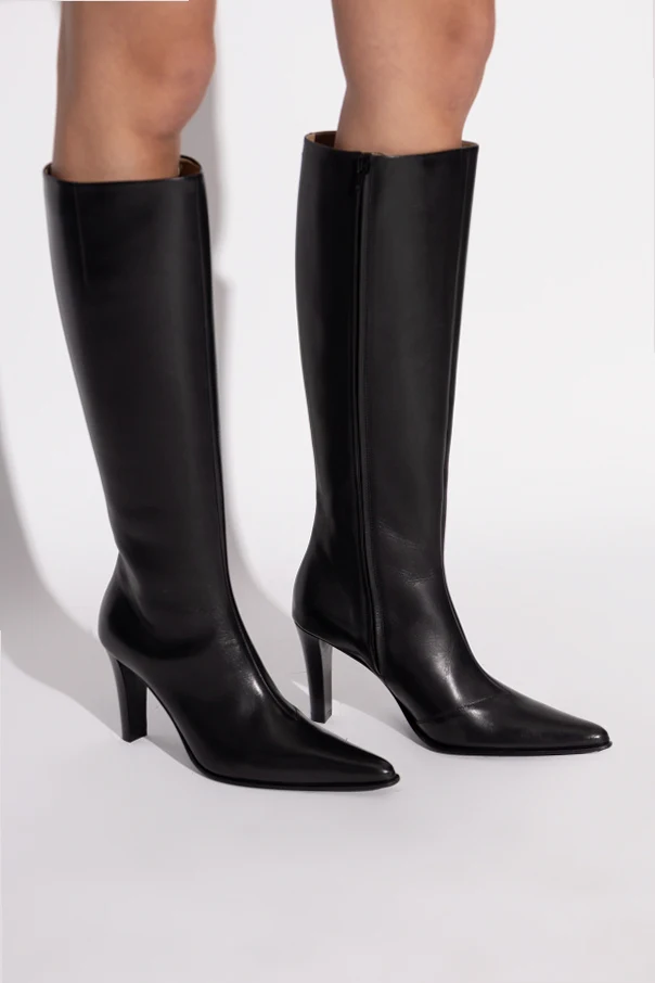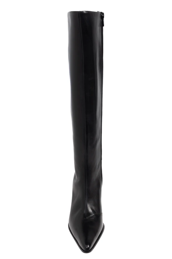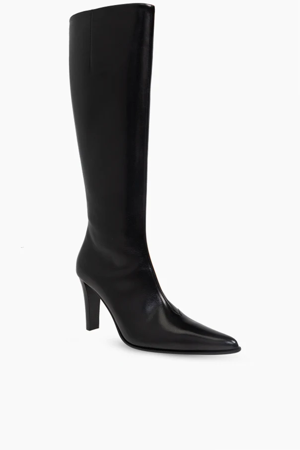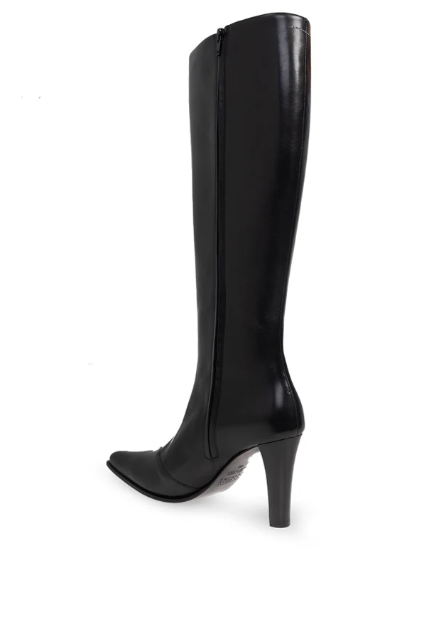 Discover the epitome of modern sophistication with the Leather Knee-Length Boots by MM6 Maison Margiela , designed as an homage to conceptual fashion rooted in the rebellious spirit of diverse subcultures. Meticulously crafted from premium, smooth calfskin leather, these boots exude understated elegance with their lustrous finish and seamless, minimalist silhouette.
