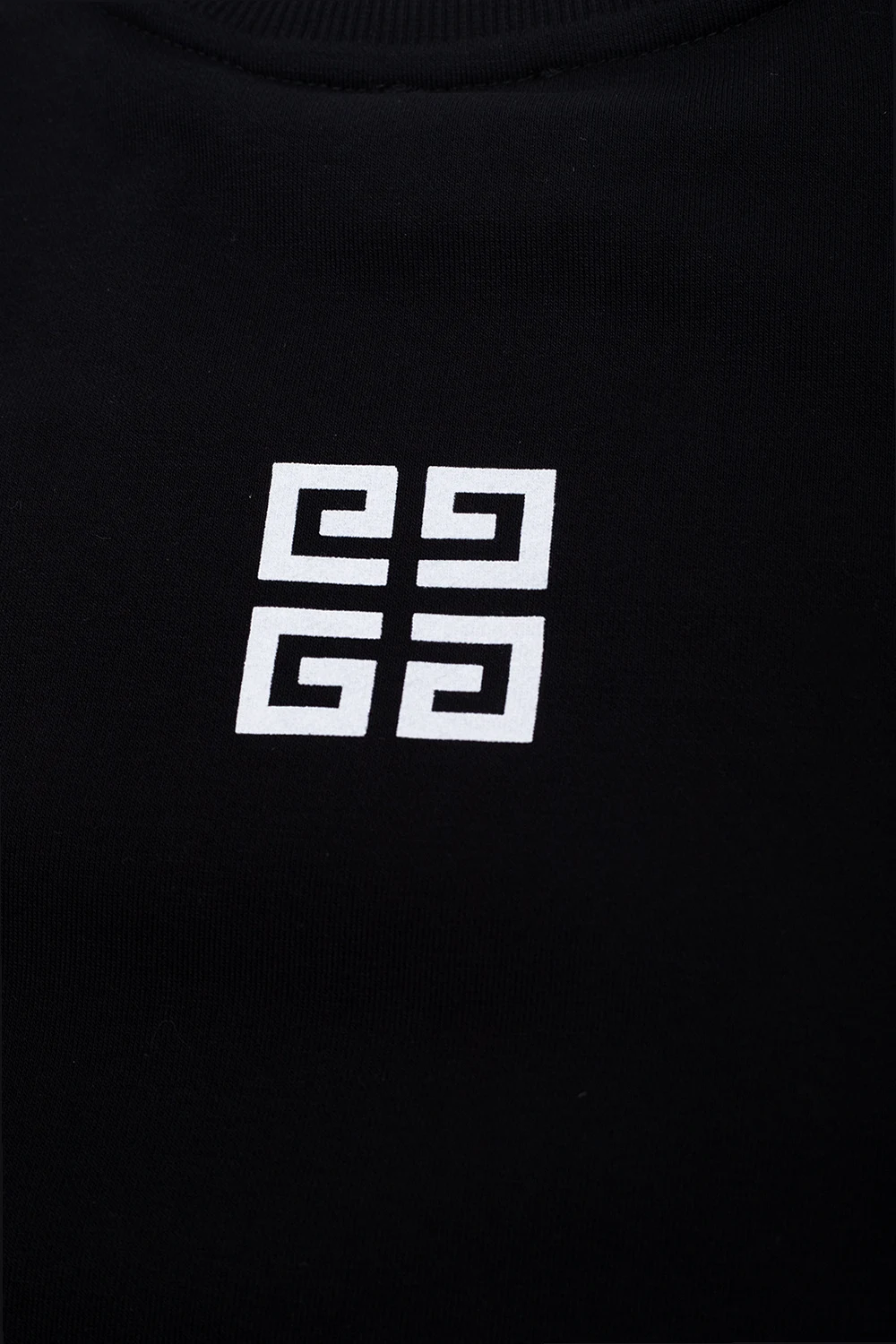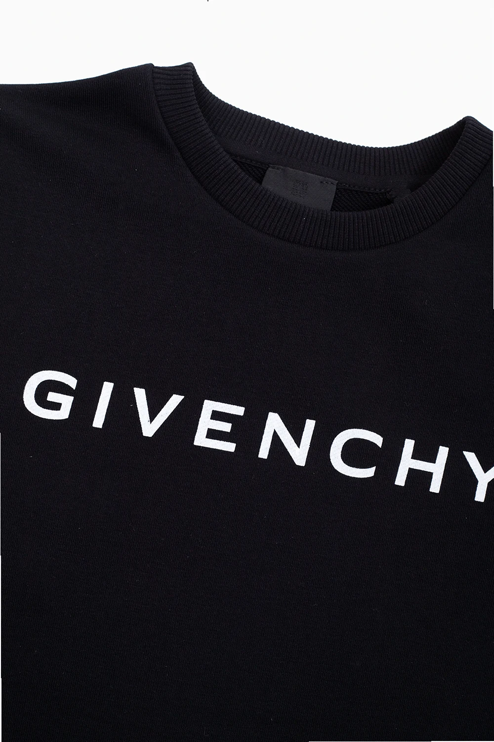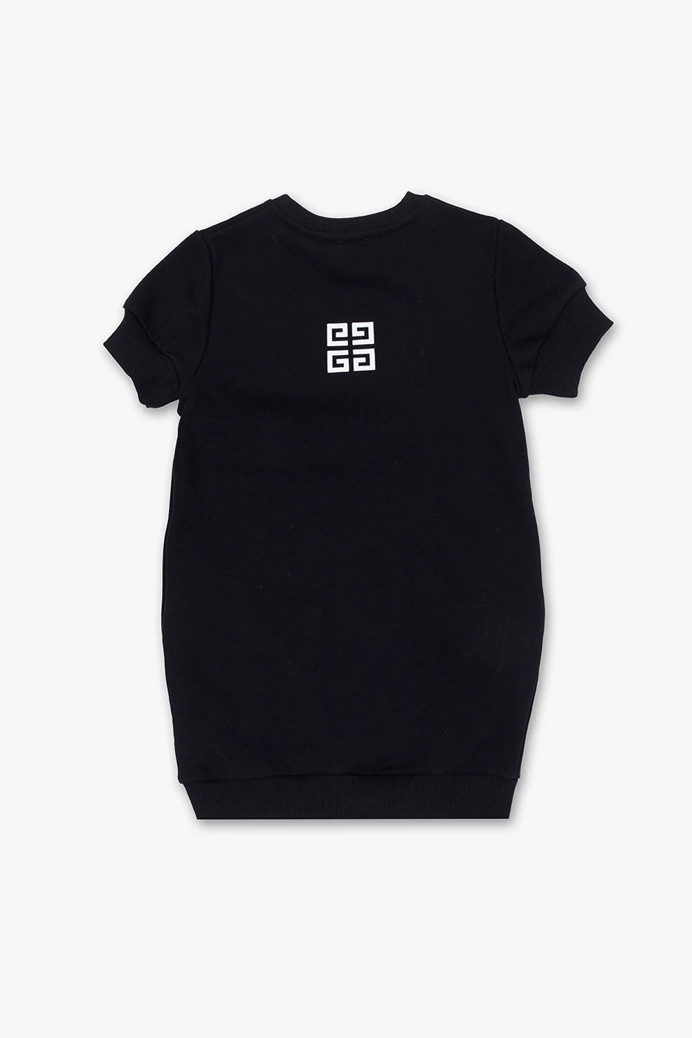 Black dress from Givenchy Kids. Made of cotton, this design features white logo print, two slip pockets and ribbed trims at the crew neck, hem and cuffs.
