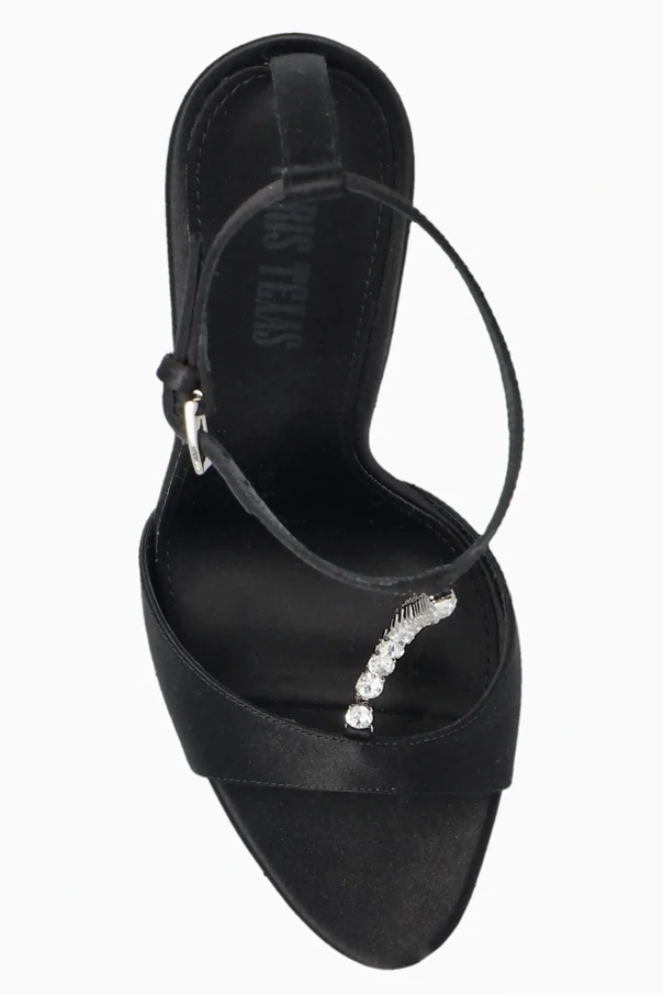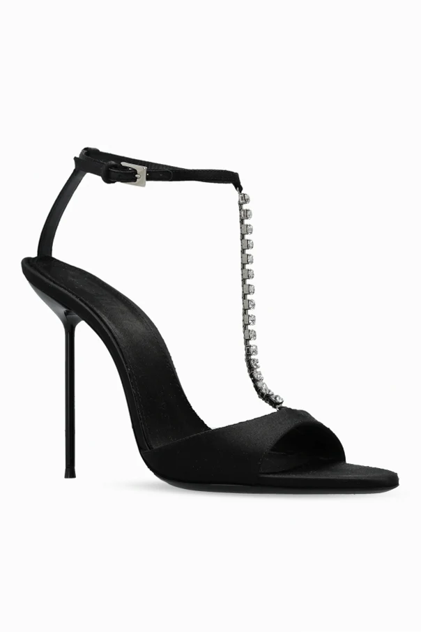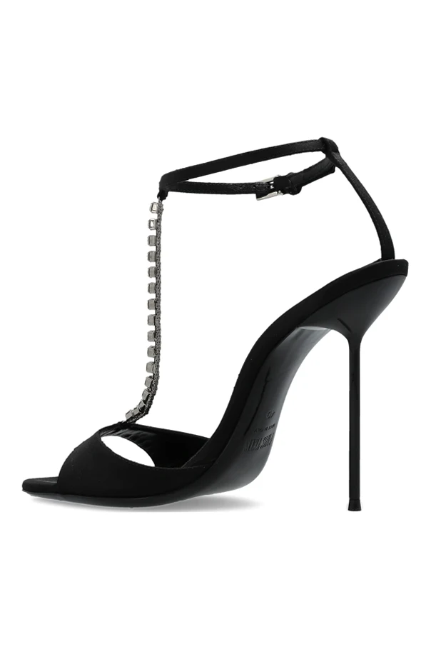 The Lidia Heeled Sandals by Paris Texas effortlessly epitomize refined sophistication. Meticulously crafted with a sleek stiletto heel and an open-back silhouette, these sandals accentuate an elongated, graceful line. The subtle sheen of satin-finished straps and insole imbues an air of understated opulence, while the minimalist T-bar design—adorned with glimmering oversized crystals—commands attention with every step.