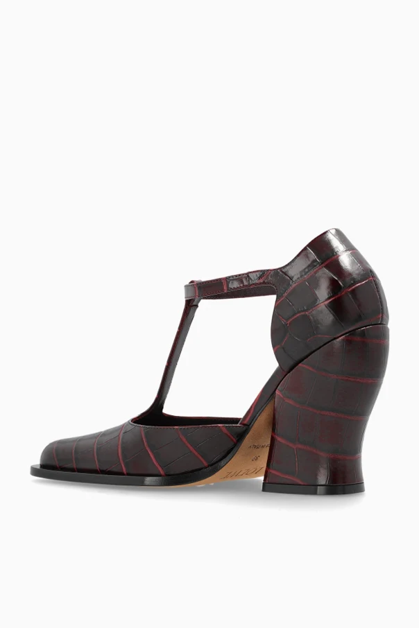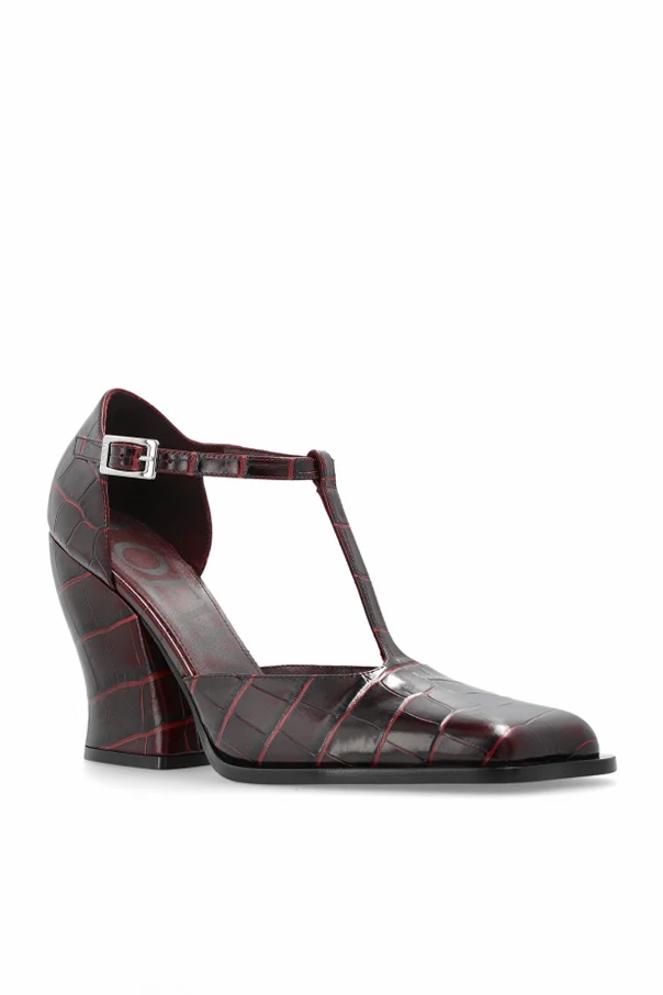 An embodiment of modern artistry and timeless heritage, the Onda Heeled Shoes by Loewe captivate with their sculptural, wave-inspired heel—an architectural statement that exudes sophistication. Crafted from luxurious, crocodile-embossed leather in a deep, single-toned burgundy, the upper's exquisite pattern radiates both opulence and refinement.