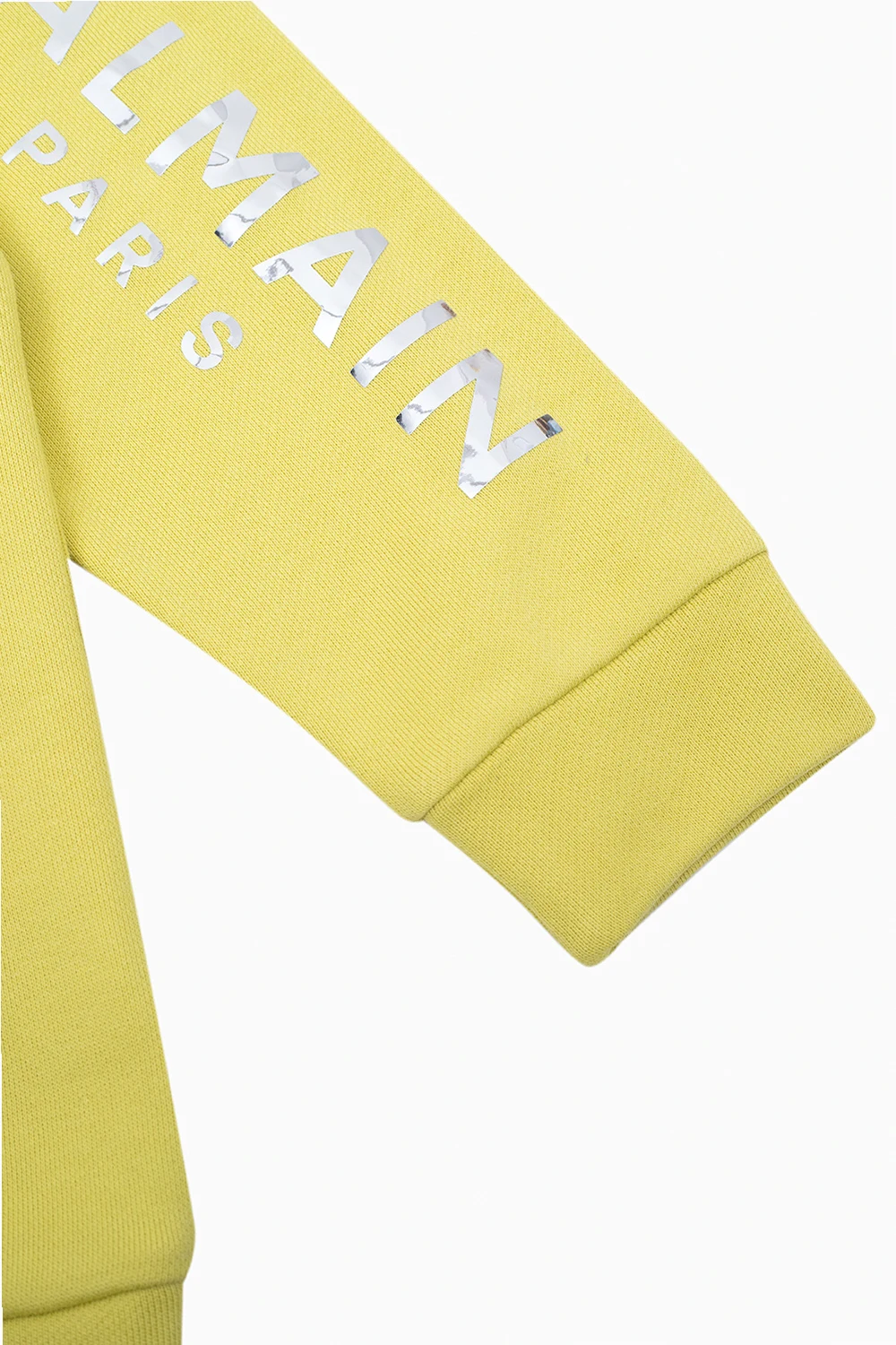 Green crewneck sweatshirt from Balmain Kids. Made of cotton, this long sleeve design features a silver-tone logo pattern and ribbed edges.
