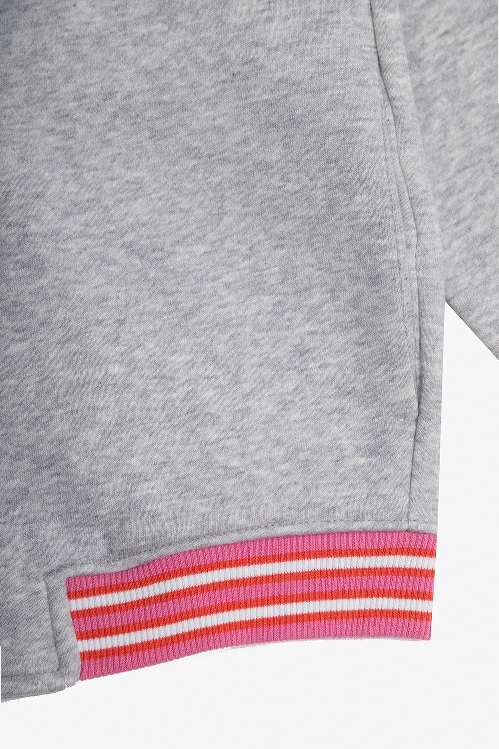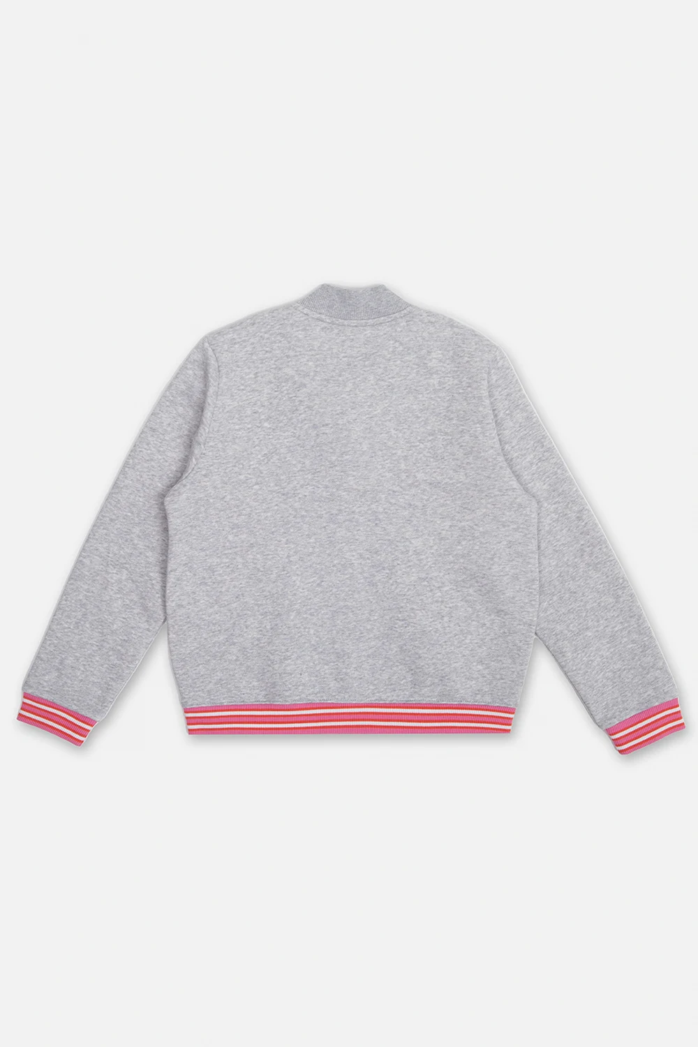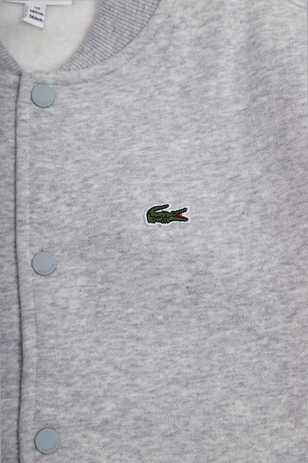Grey bomber jacket from Lacoste Kids. Fastened with snap buttons, this design features two front pockets, multicolored logo patch and ribbed trims at the hem and cuffs.
