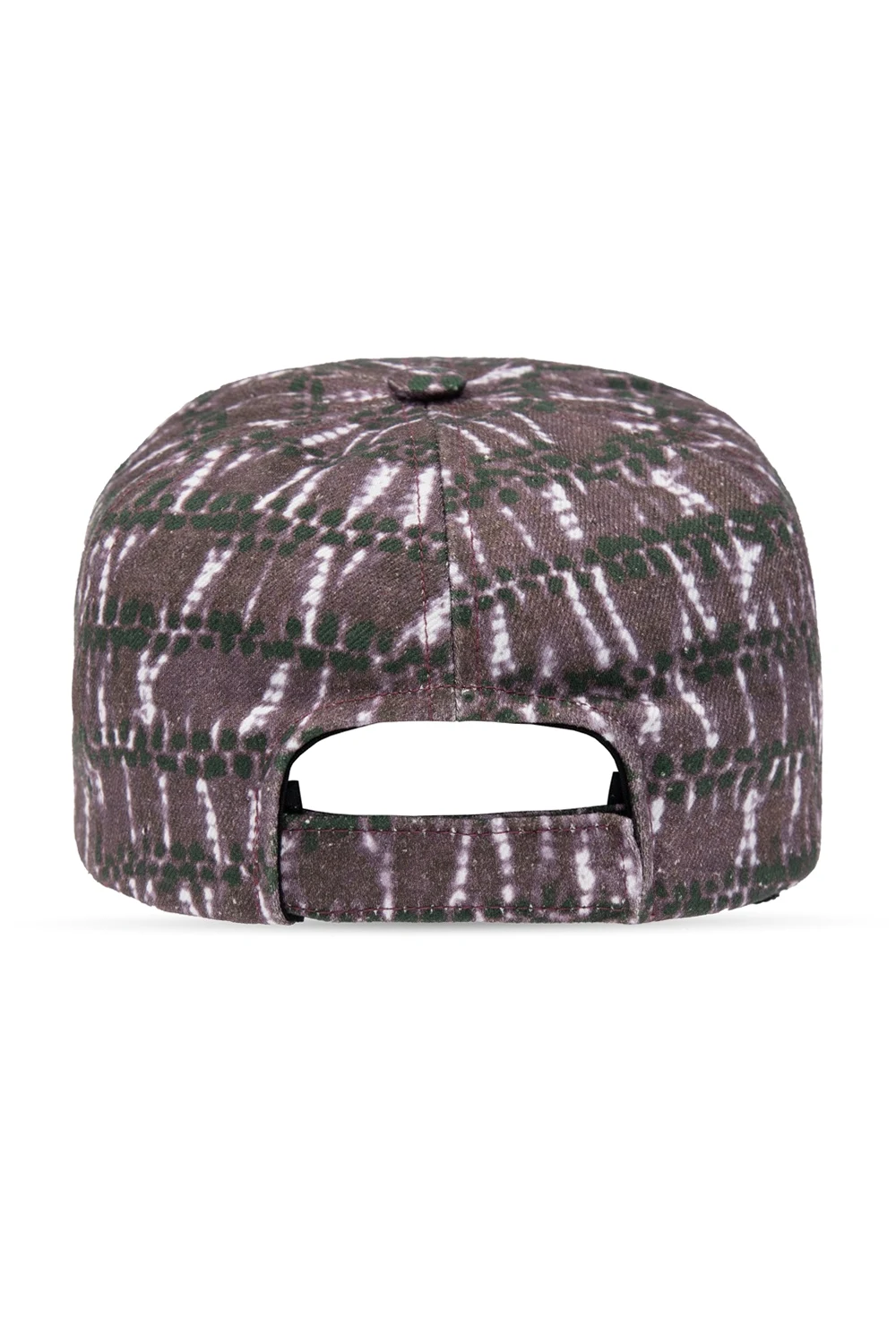 Purple ‘Tyron’ baseball cap from Isabel Marant. Boasting a velvet-flocked logo appliqué, this cotton-crafted piece of headwear offers an adjustable fit through a velcro strap on the back.