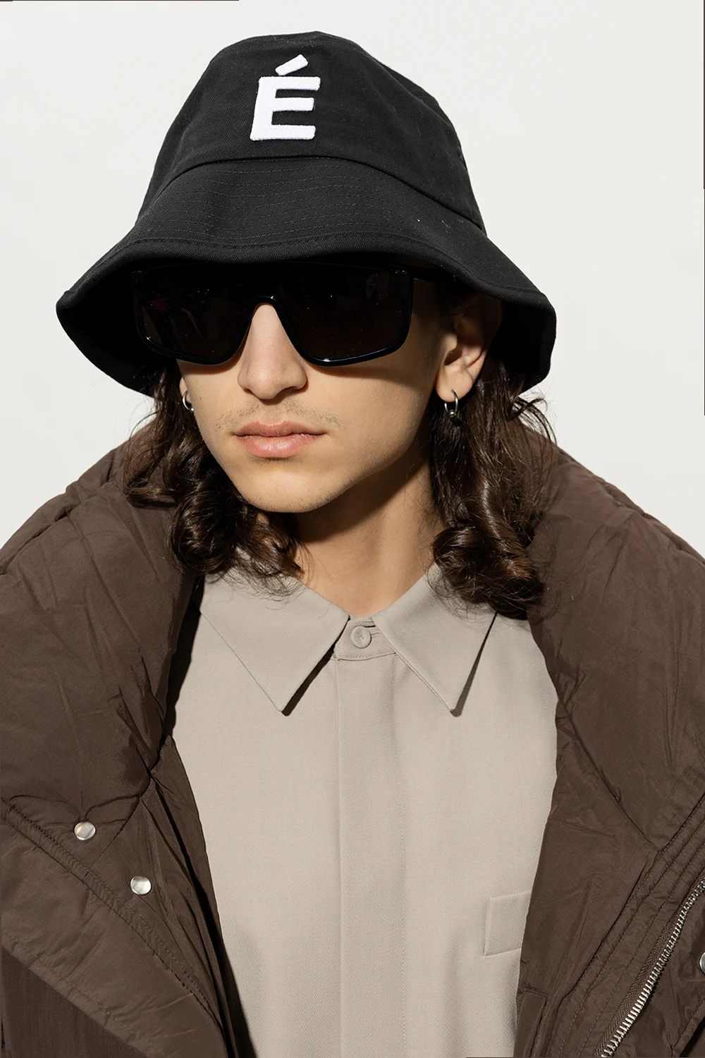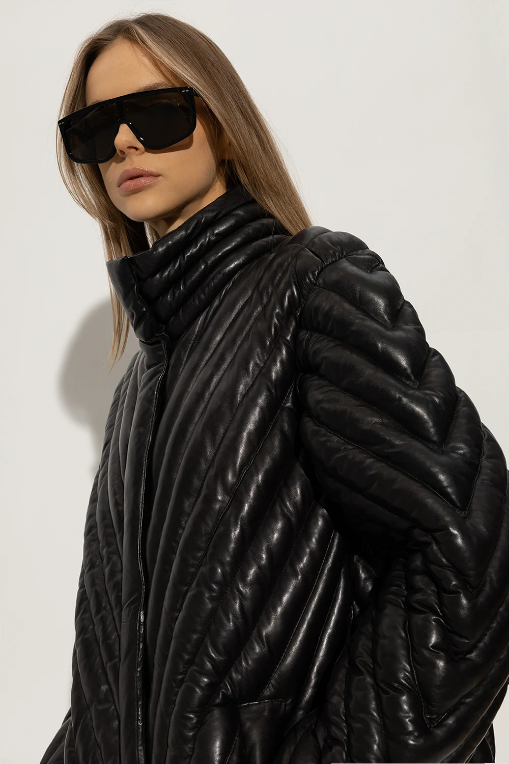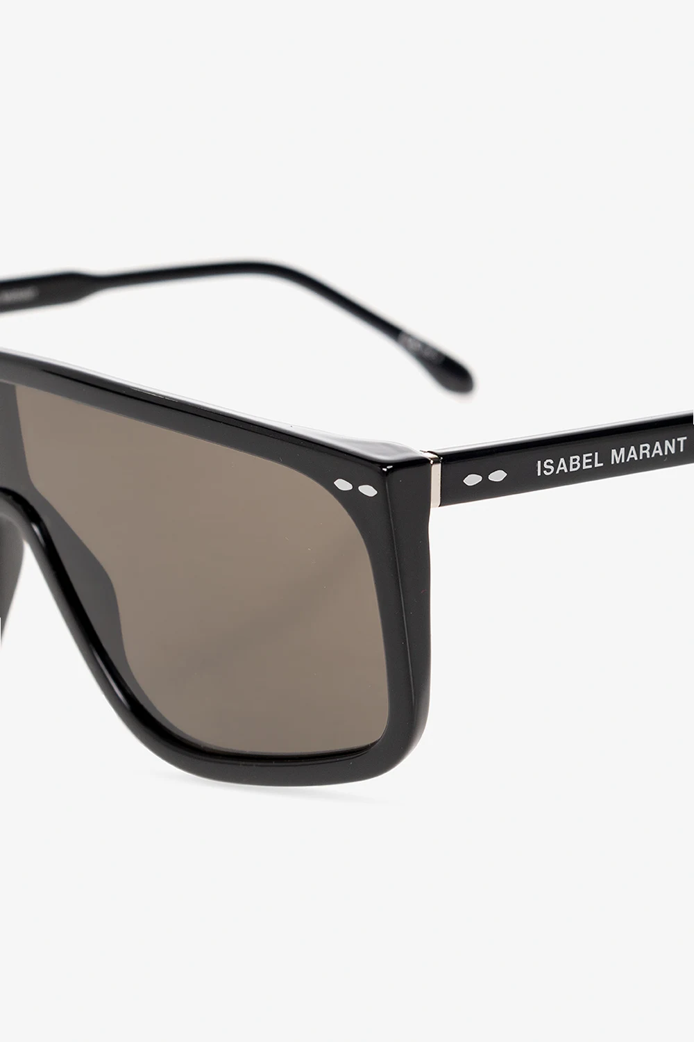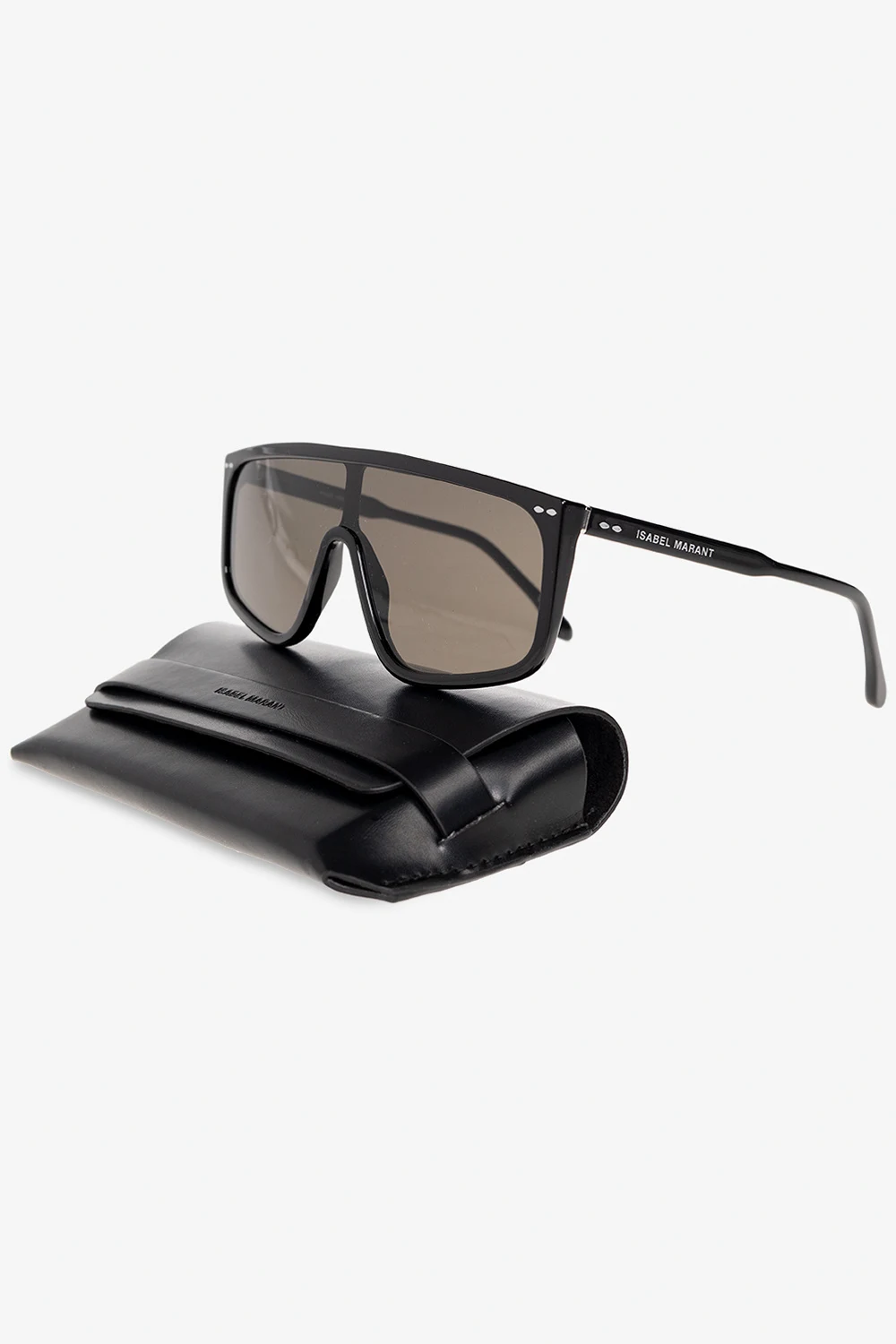 Black sunglasses from Isabel Marant. This pair features a silver-tone logo on the temple and dark grey panoramic lenses designed to block 100% of UV rays. Comes with a case.