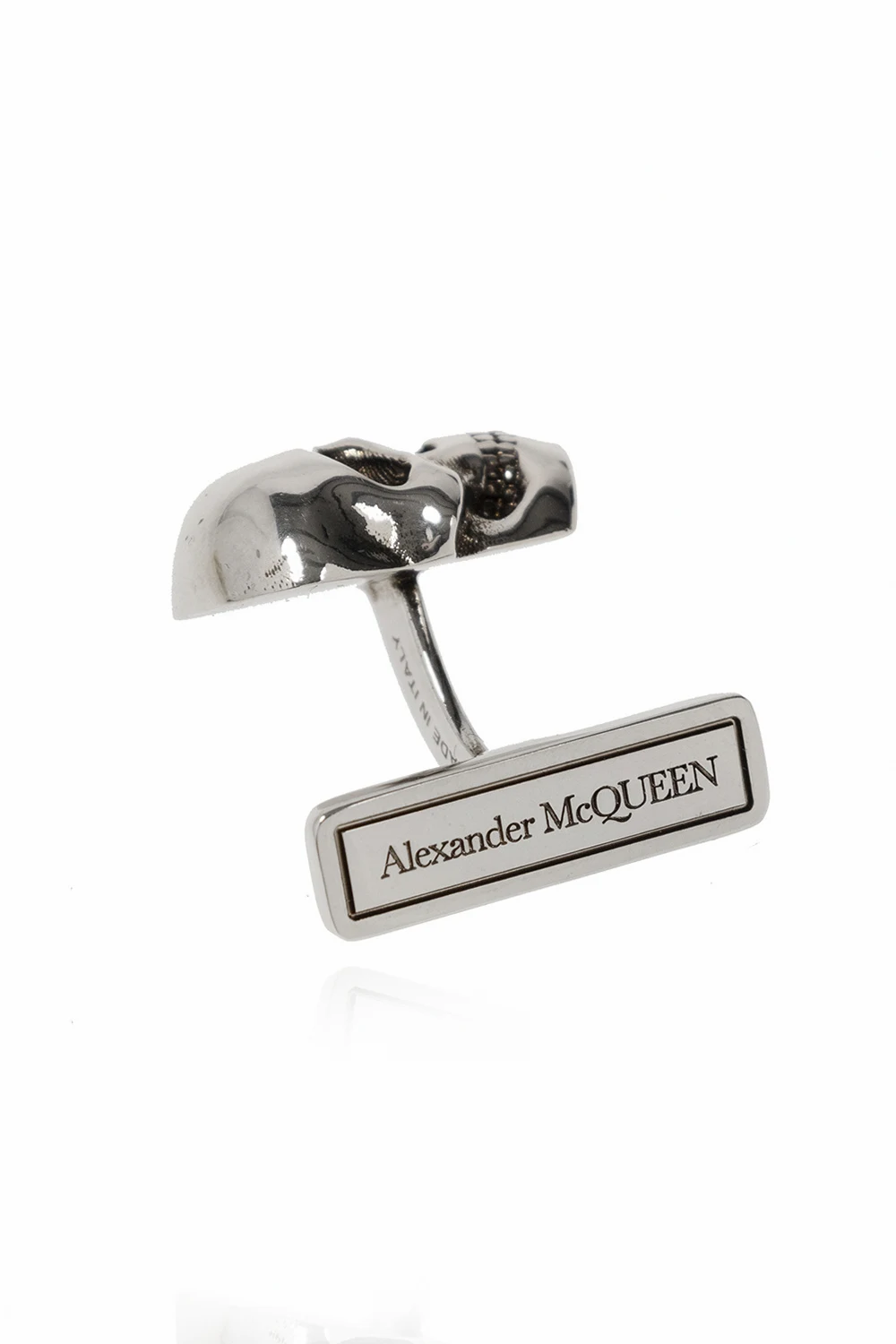 Silver-tone cufflinks from Alexander McQueen. Made of brass, these items feature the label's signature skull appliqué embellished with crystals using the pavé technique and a closure engraved with a logo.