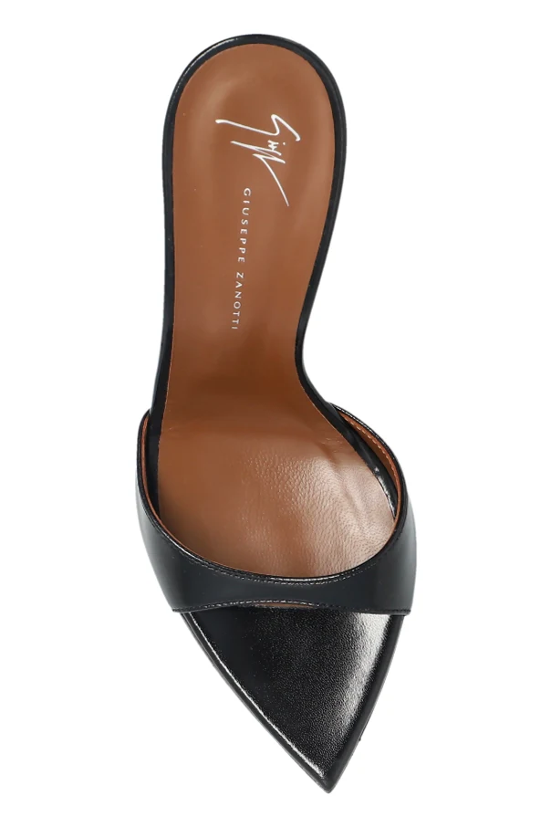 Exude effortless sophistication with the Intrigo Heeled Mules by Giuseppe Zanotti , masterfully crafted in sumptuous black leather with a refined, subtle sheen. These mules captivate with a distinctly modern, minimalist silhouette—featuring a narrow, pointed toe and a tall, slender stiletto heel that visually elongates your frame.