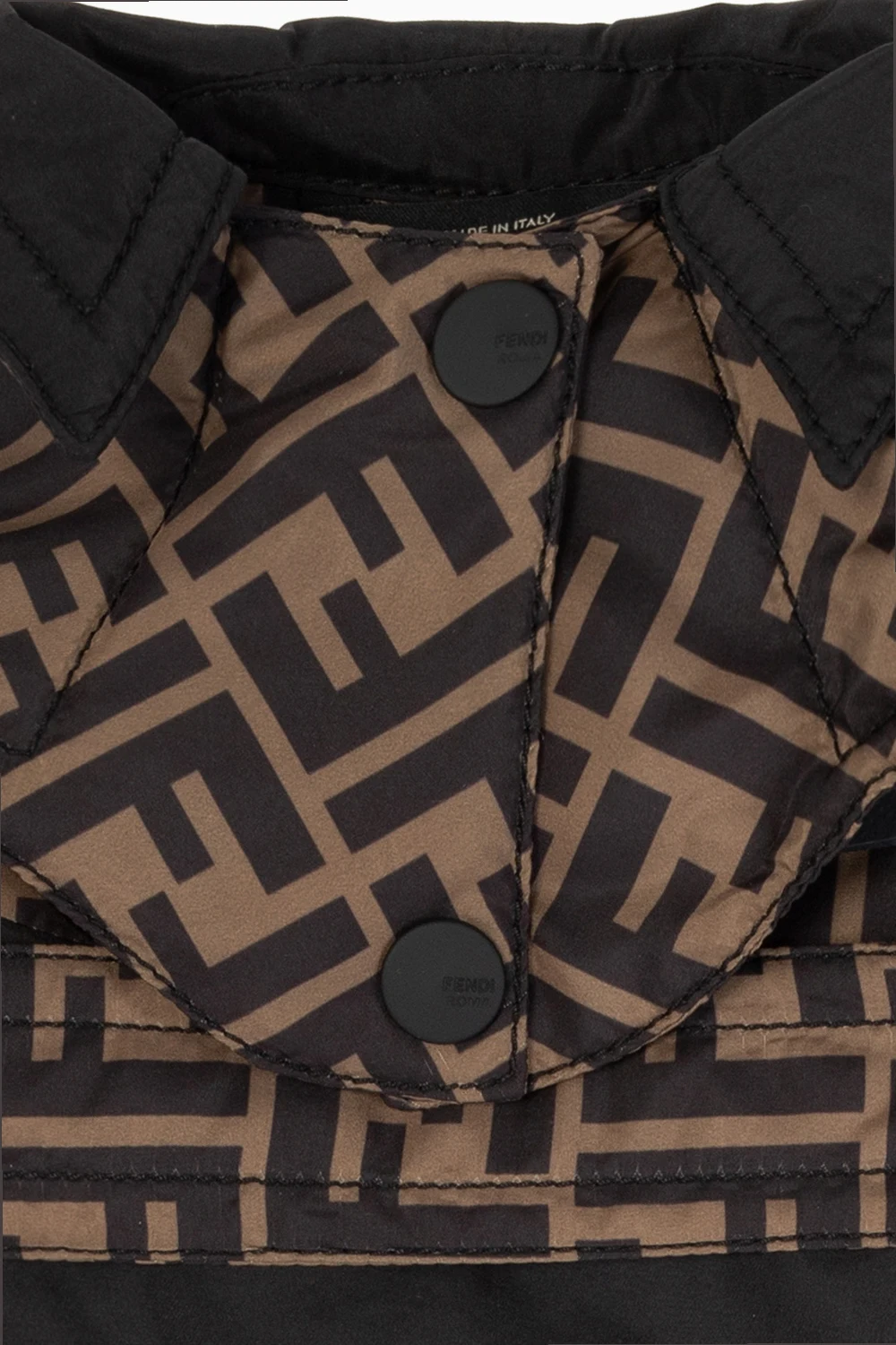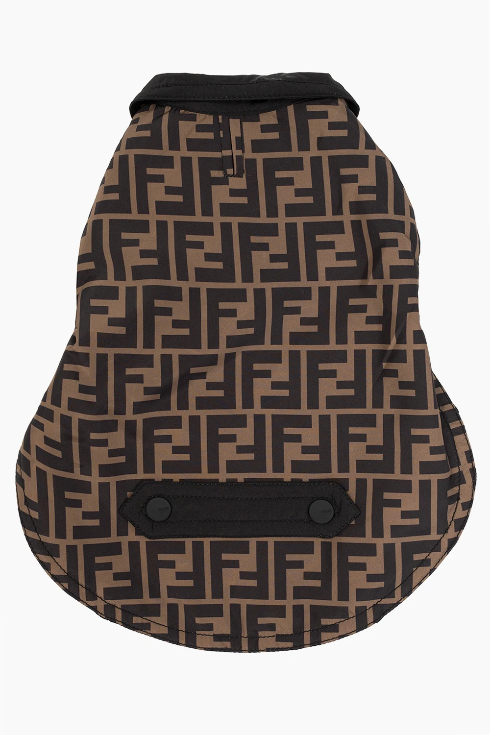 Black and brown dog coat from Fendi. Made of nylon, this design showcases the signature FF monogram all over.
