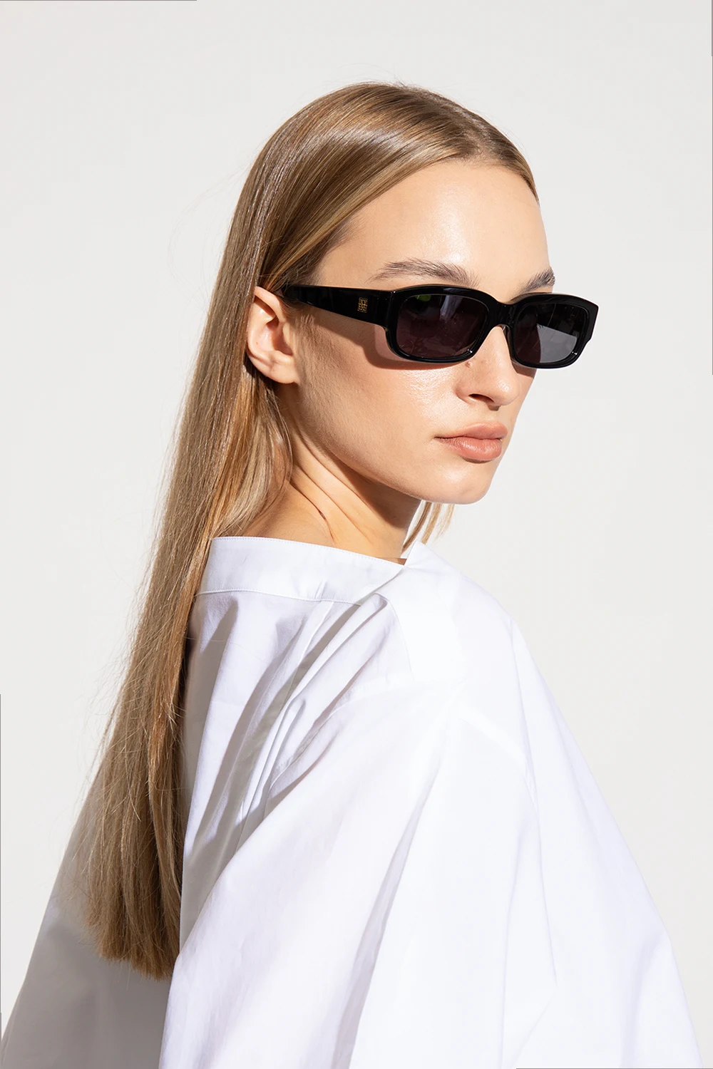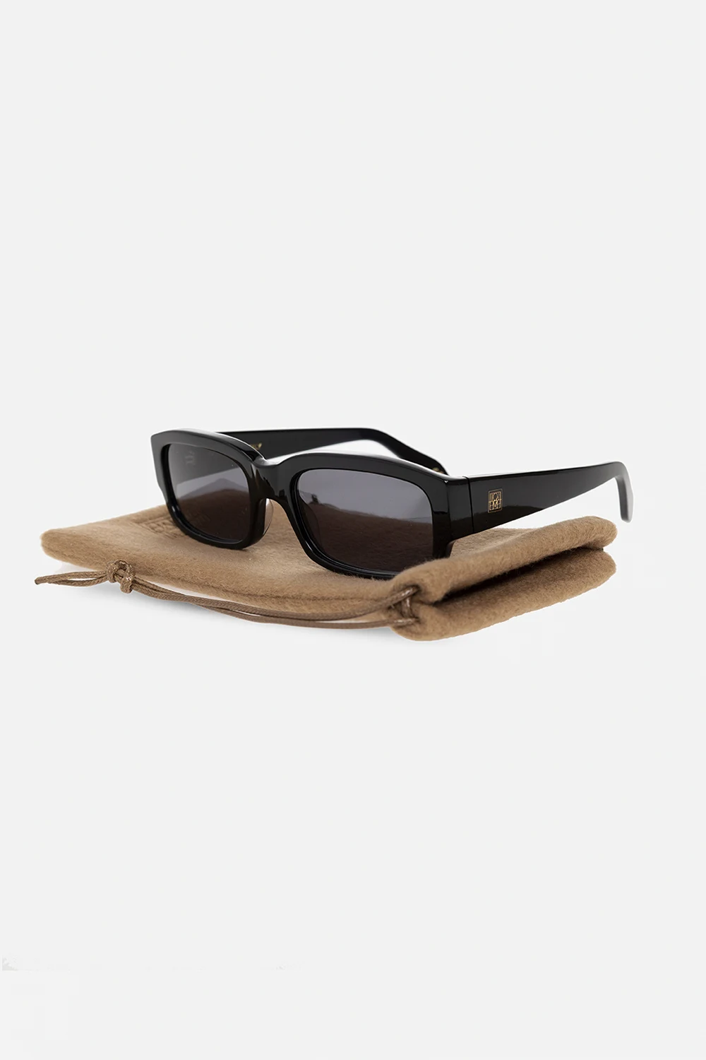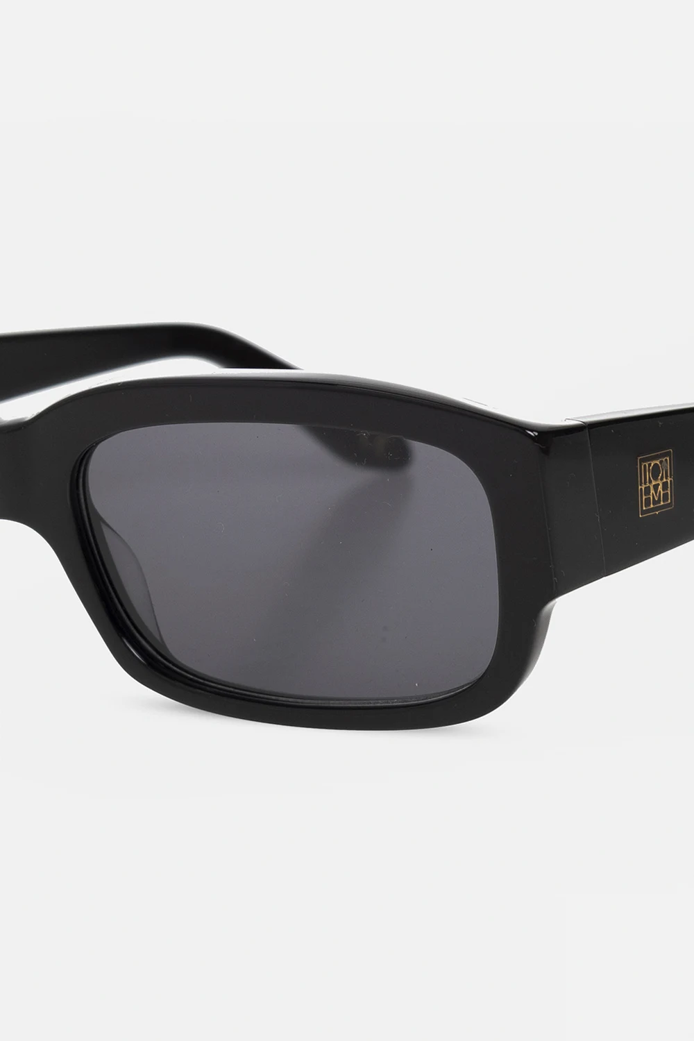 Black ‘The Regulars’ sunglasses from Toteme. Handmade in Italy from thick polished acetate, this pair features rectangular frames with soft rounded edges, logo-engraved temples and grey lenses with UV protection. This pair comes with a cashmere pouch with brown logo embroidery.