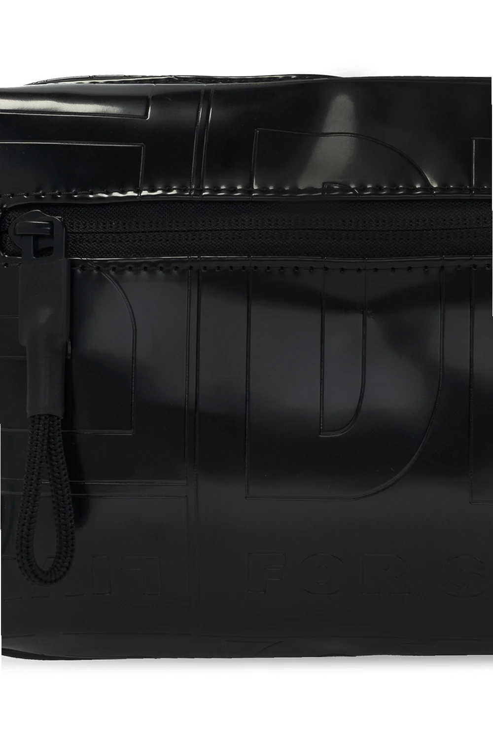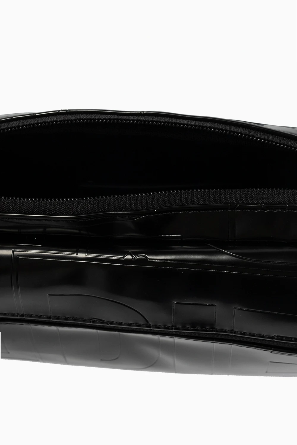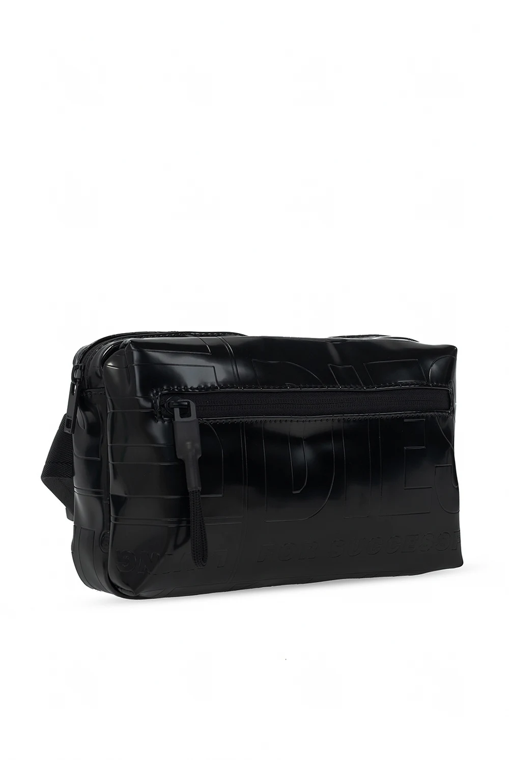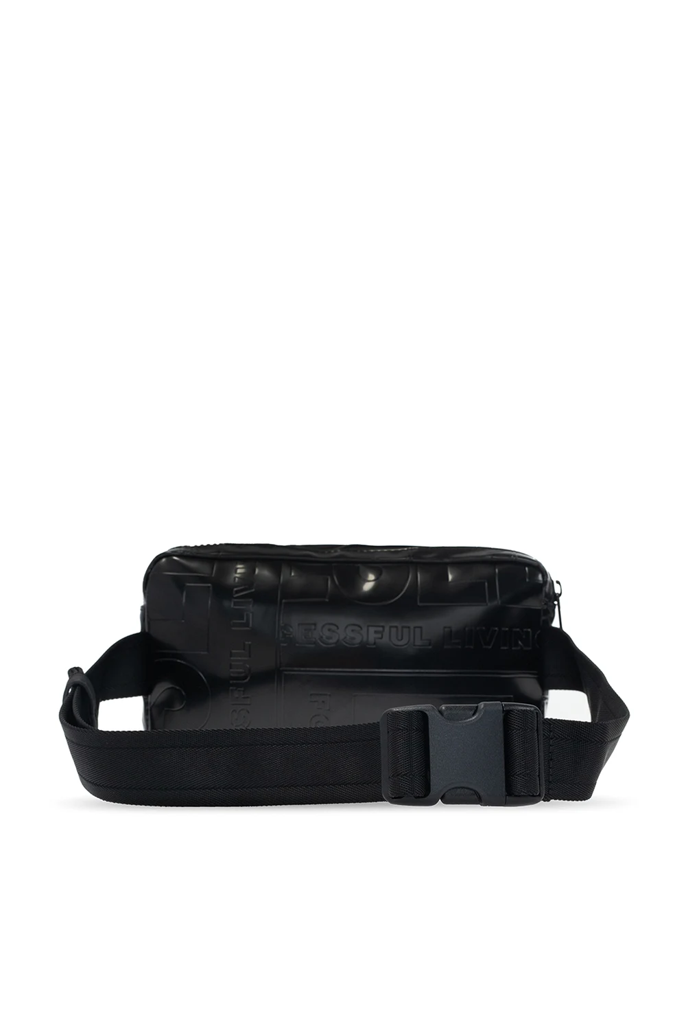 Black belt bag from Diesel. Embossed with the brand's logo, this style employs zip fastening, an external zip pocket on the front, an adjustable strap and interior with one compartment and one zip pocket. Black metal hardware details complete the look.