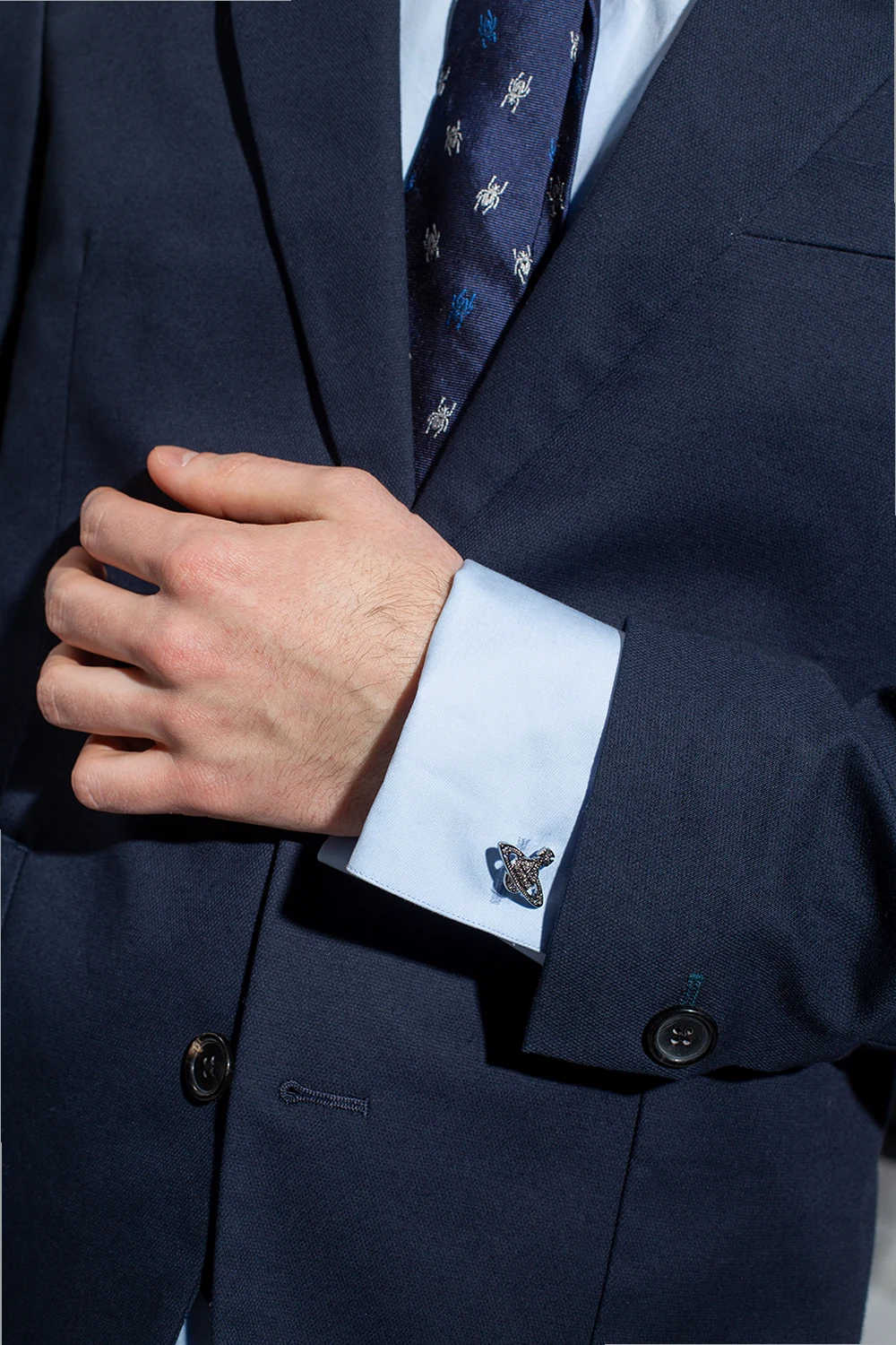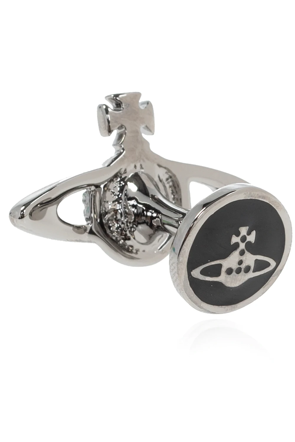 Silver-tone cufflinks from Vivienne Westwood. Made of brass, they showcase a crystal-embellished logo application.