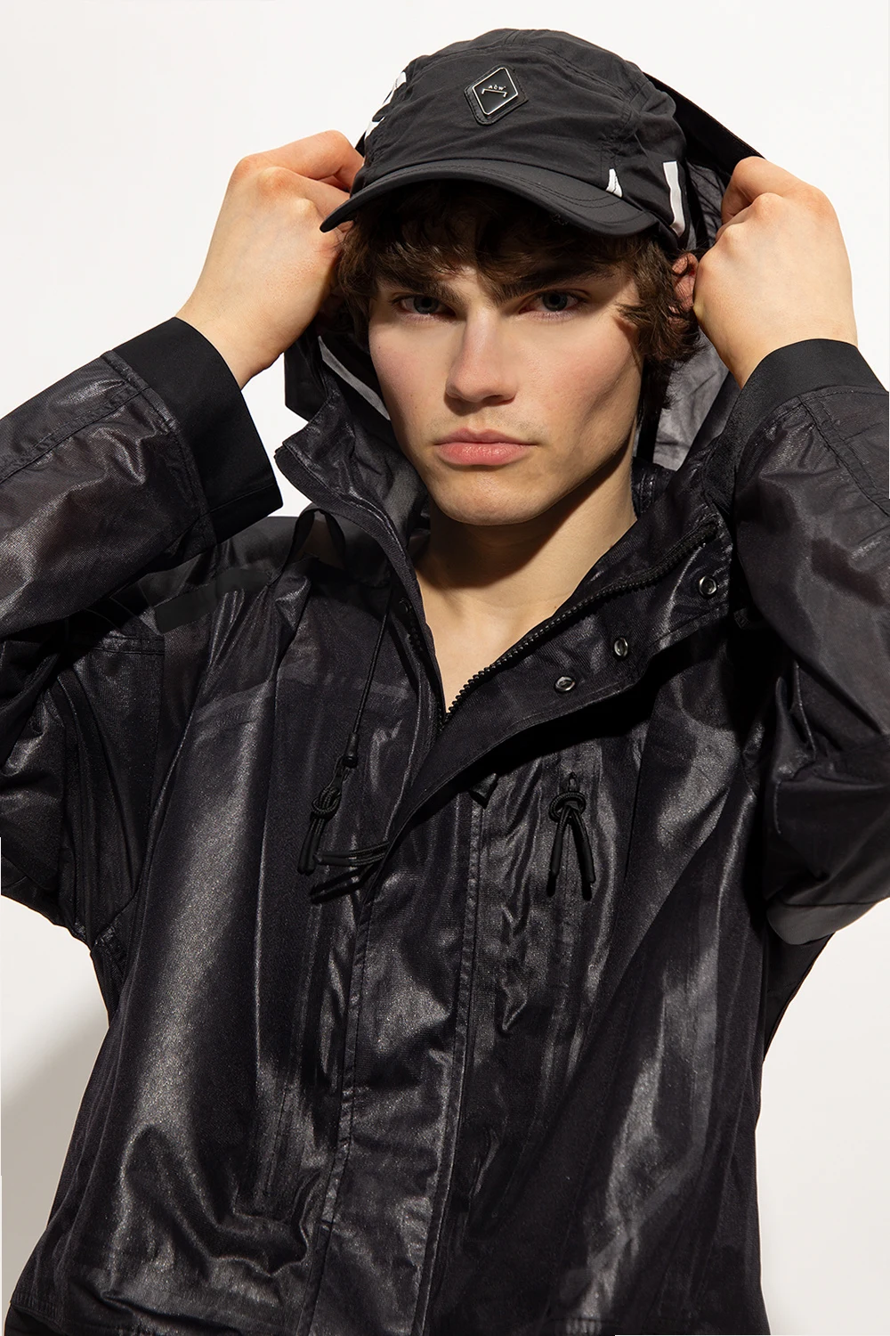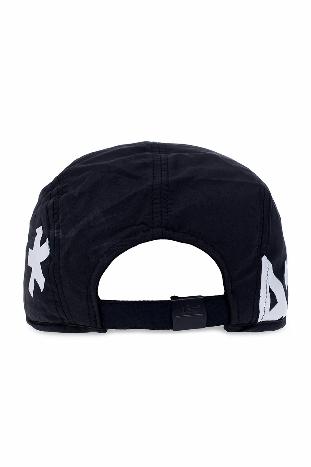 Black baseball cap from A-COLD-WALL*. Emblazoned with a white logo patch, this item features a buckle adjuster at the back.