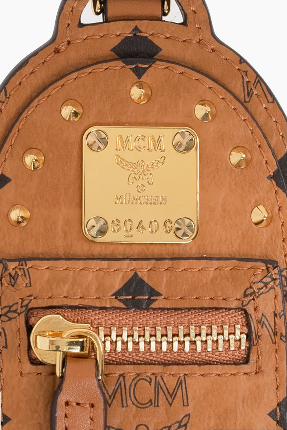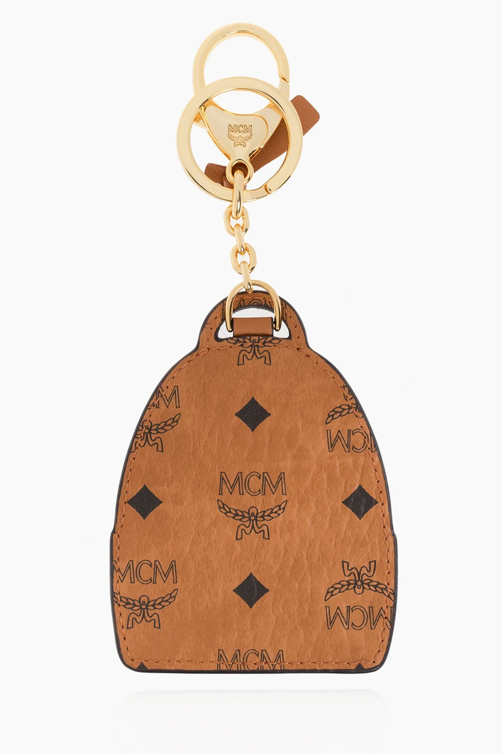 Gold-tone keyring from MCM. Featuring a lobster clasp, this item comes with a brown charm with the brand's logo.