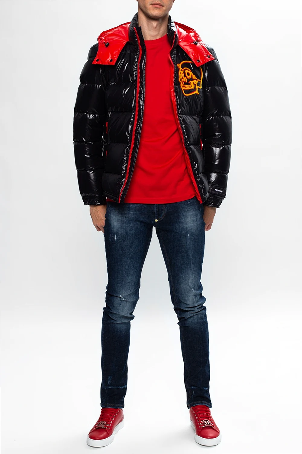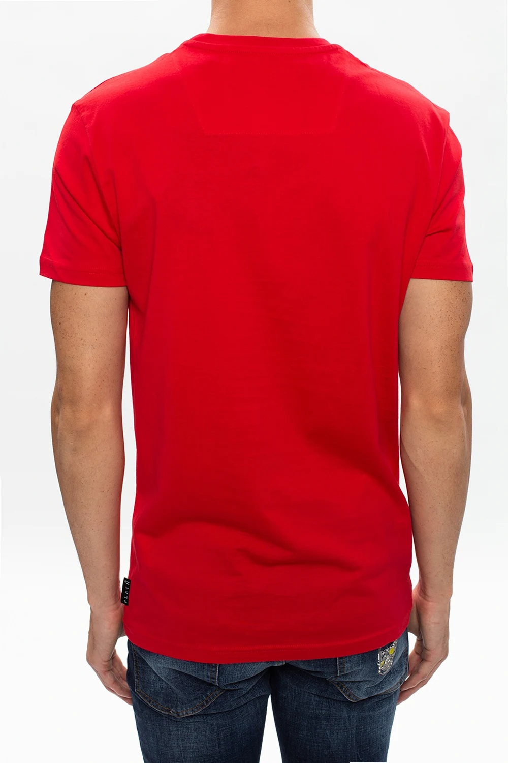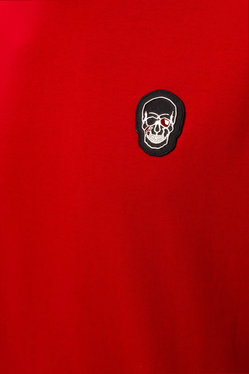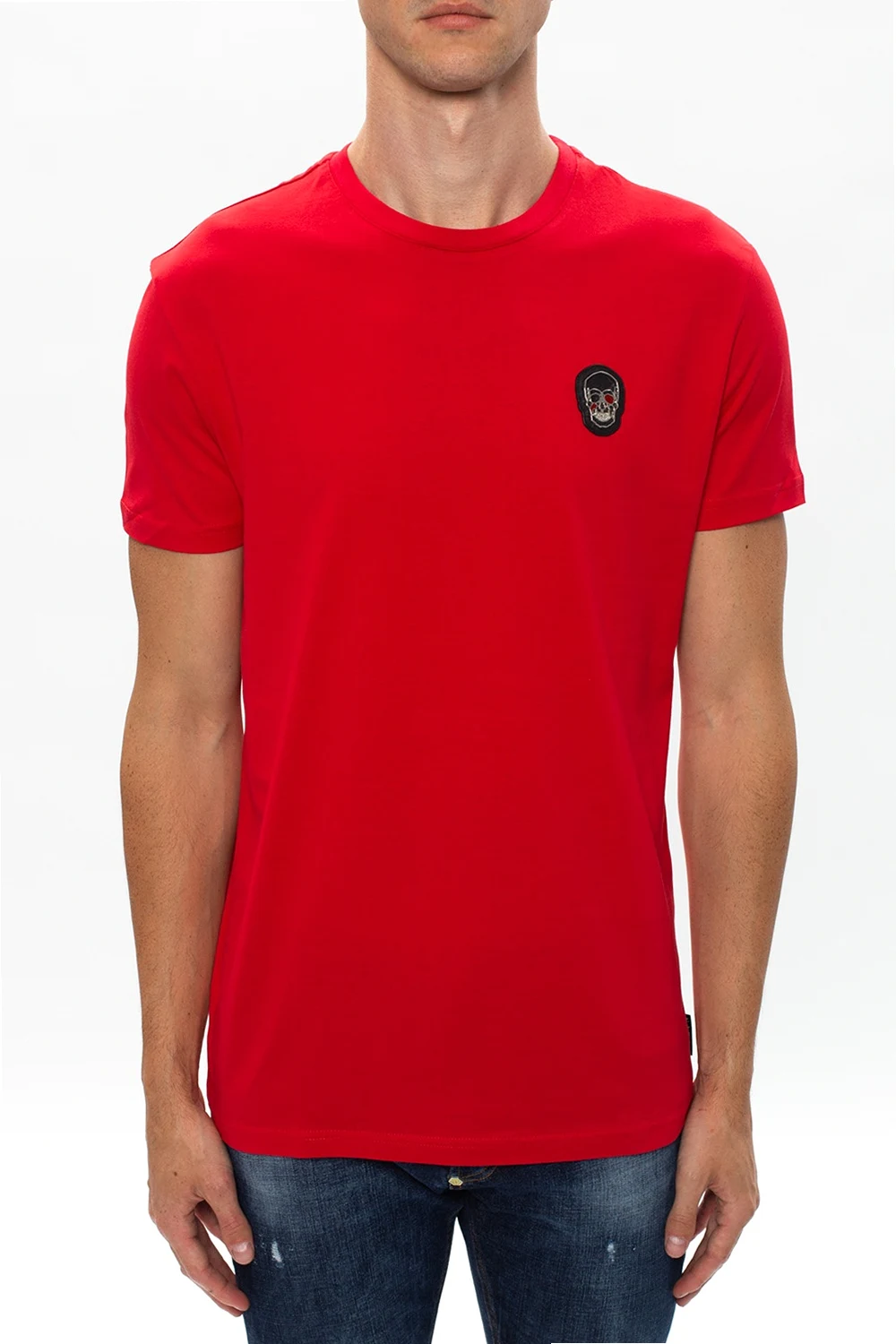 Red T-shirt from Philipp Plein. Crafted from cotton, this item comes with a decorative skull appliqué in black and silver-tone.