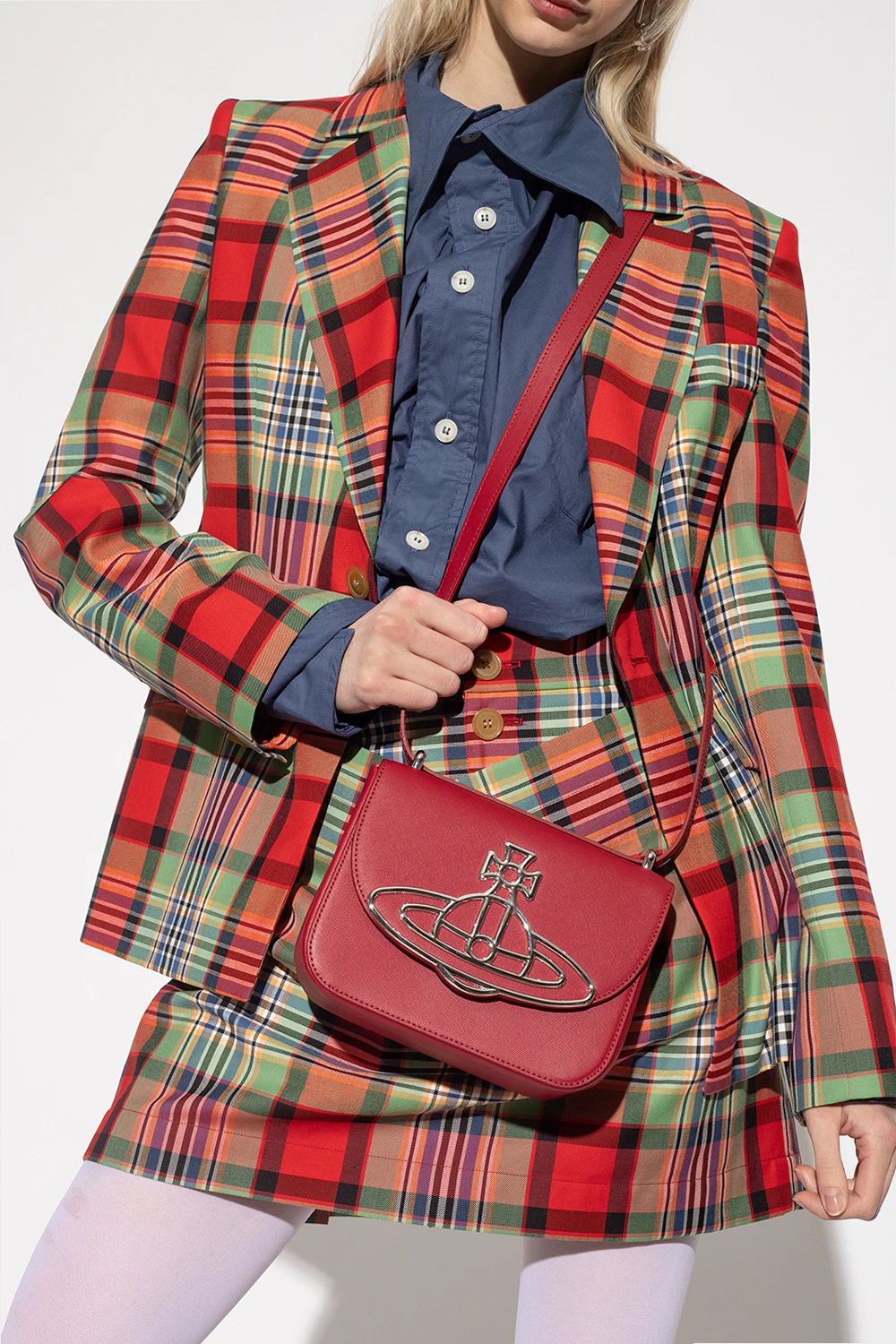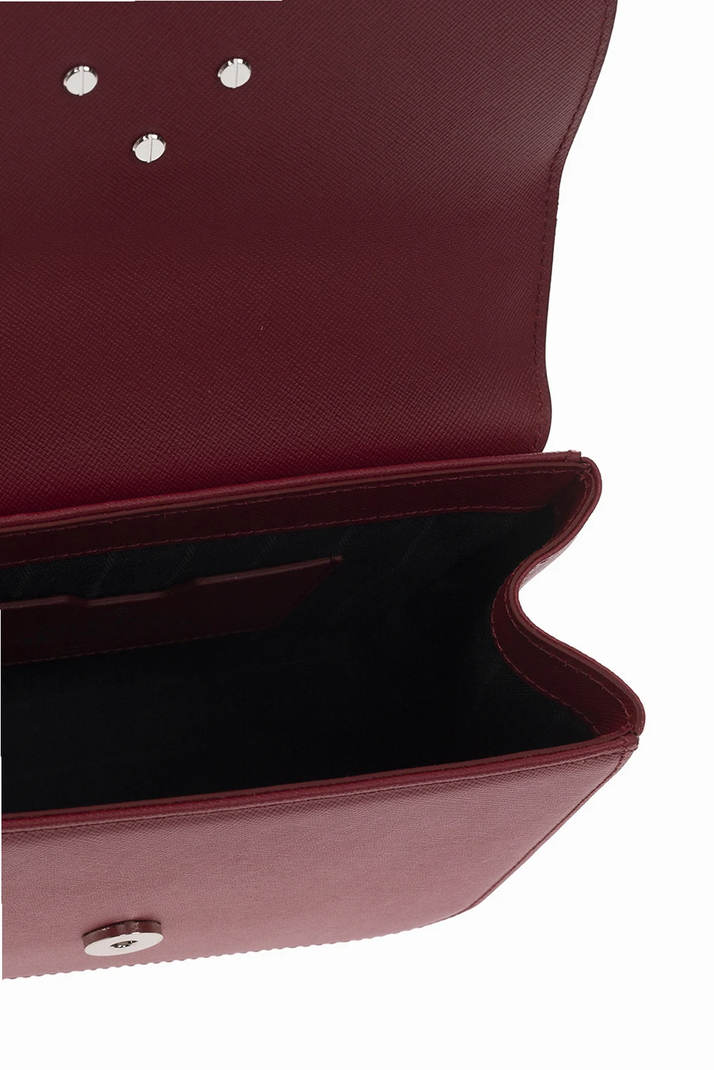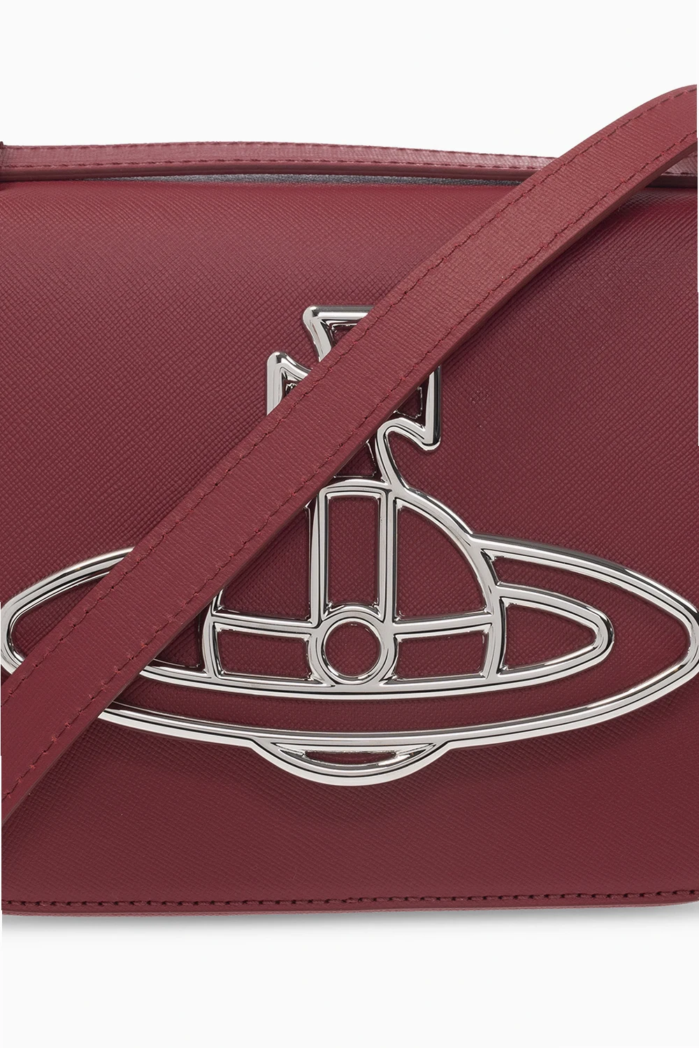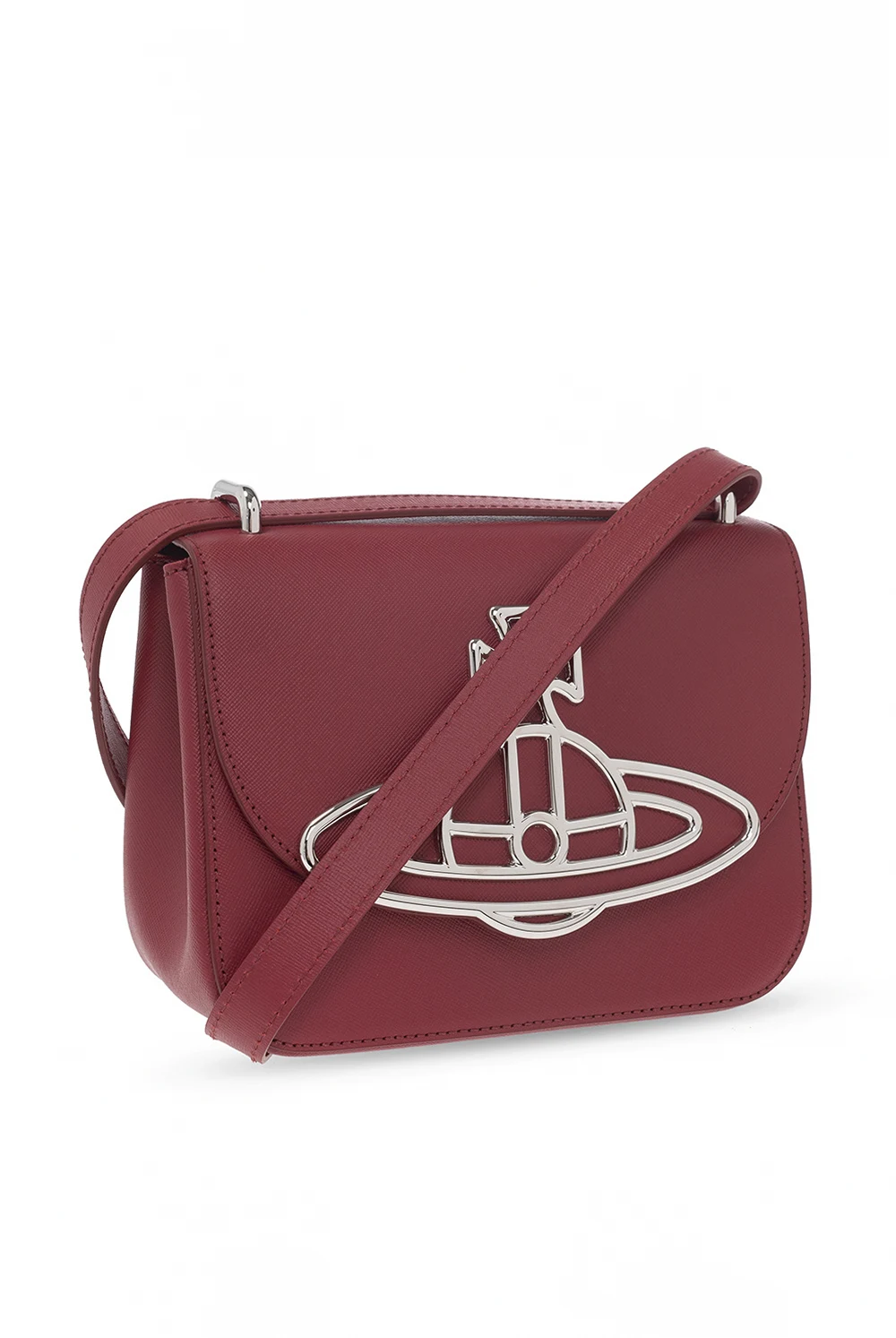 Dark red ‘Linda’ shoulder bag from Vivienne Westwood. Crafted from calf leather, this design secures with a magnetic stud closure and features a flap accentuated with a silver-tone logo plaque, a detachable and adjustable shoulder strap, silver-tone metal hardware and one internal compartment with a card slot.