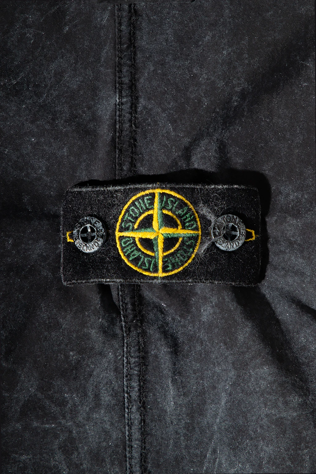 Black and grey hooded jacket from Stone Island. Fastened with a zip, this garment features two snap-fastened pockets, one zip pocket and long sleeves with a detachable logo patch.