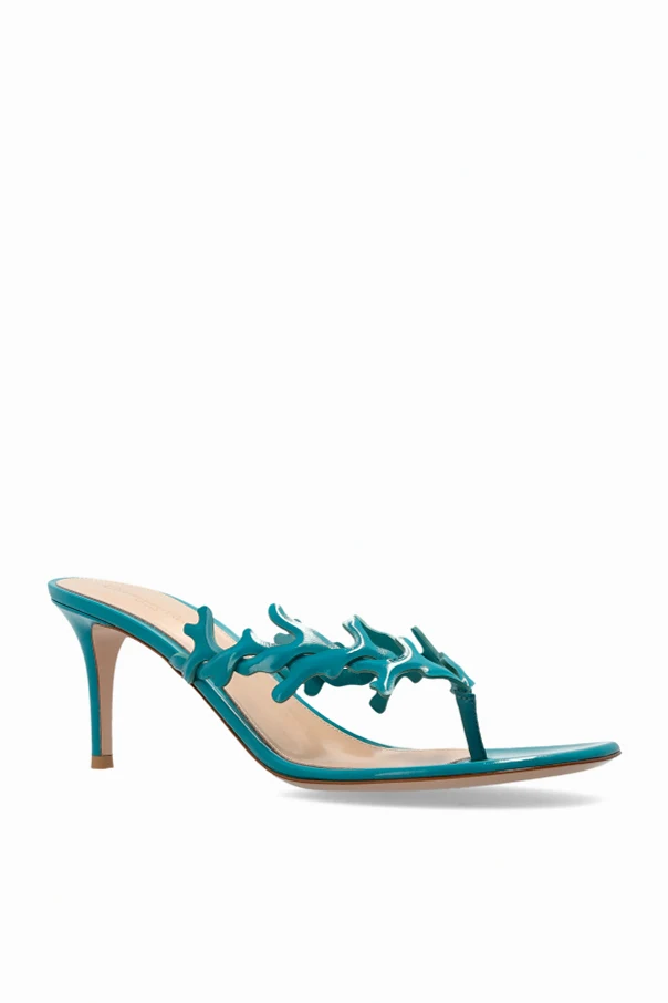 Discover the refined allure of the ‘Ocean Thong’ Mule Heels in a mesmerizing turquoise green, reminiscent of tranquil sea waters. Meticulously crafted from premium calf leather, these mules embody understated elegance with a modern twist.