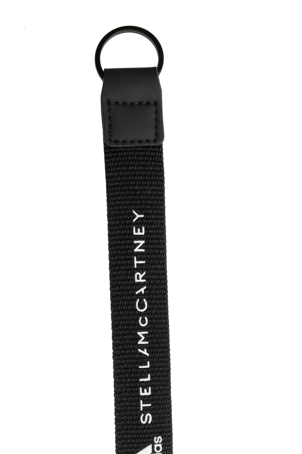 Black lanyard from ADIDAS by Stella McCartney. Fastened with a black clip, this design features decorative gathers, raised logo and round rubber logo charm.
