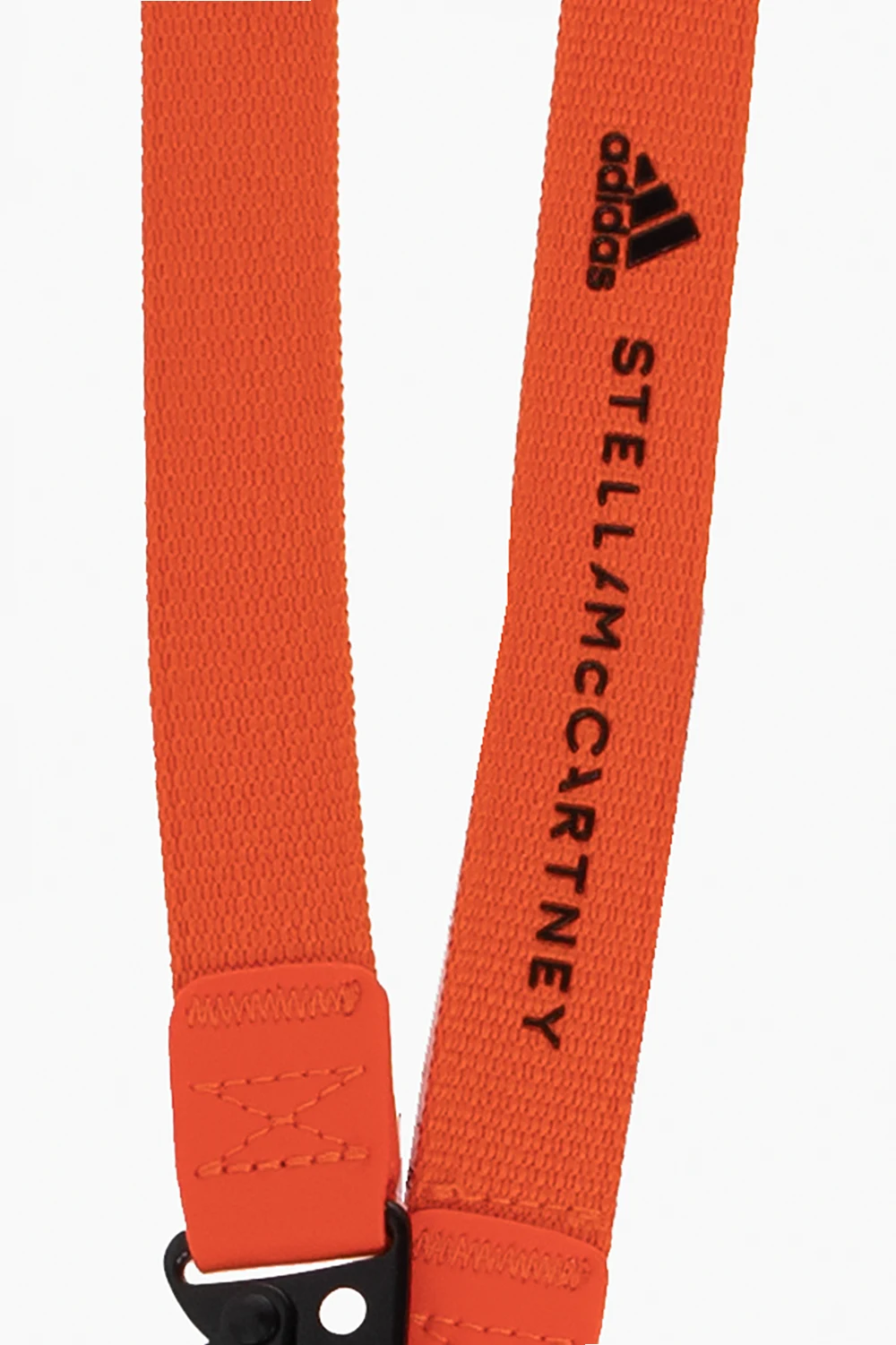 Orange key lanyard from ADIDAS by Stella McCartney. Crafted in part from recycled material, this item features a lobster clasp fastening, a varnished black logo detail and attached two black rubber pendants with tactile branding.