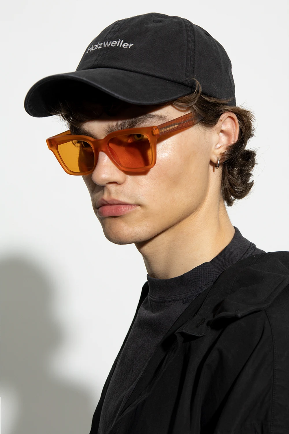 Black baseball cap from Holzweiler. Embroidered with the brand's logo in white, this item features a buckle adjuster at the back.