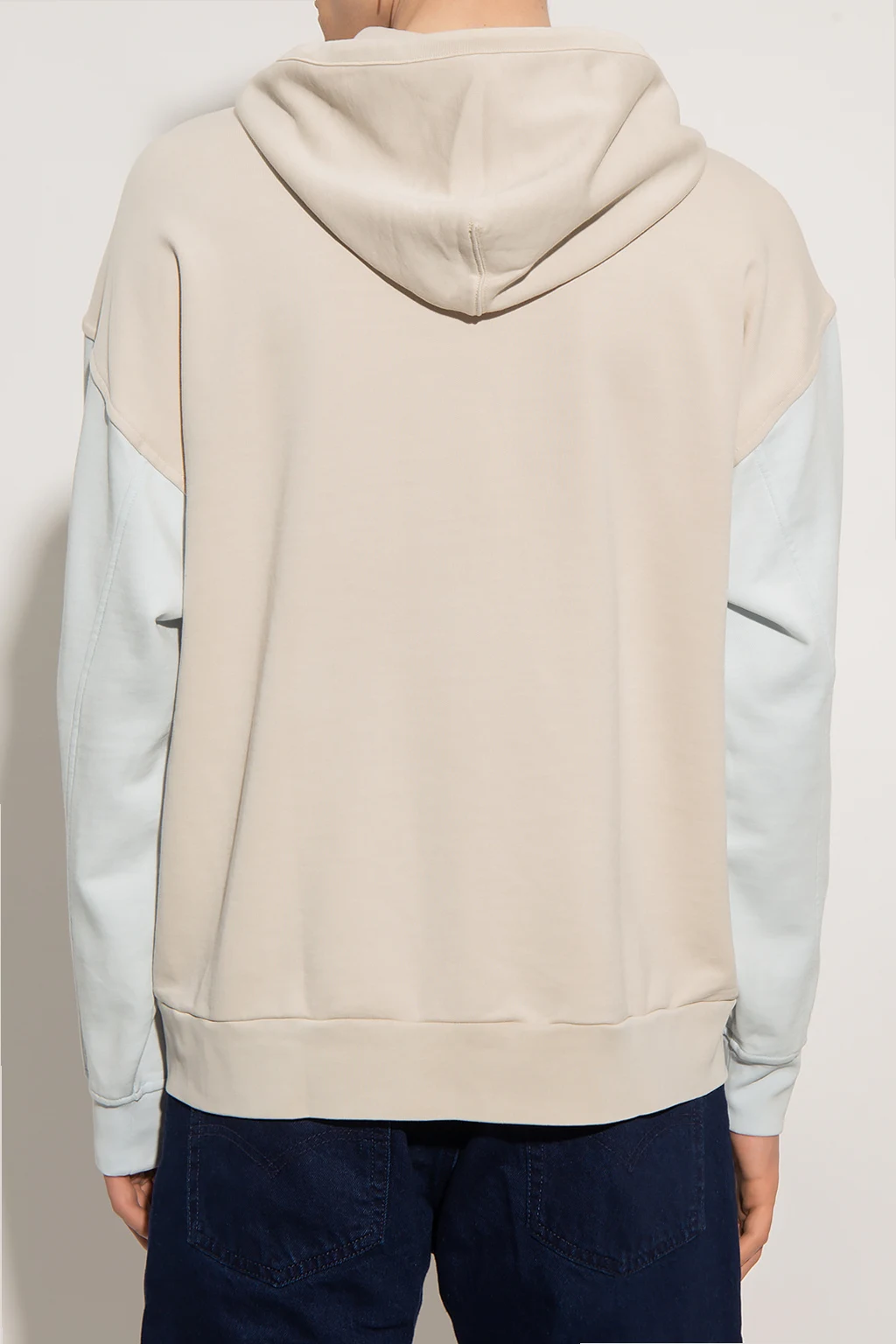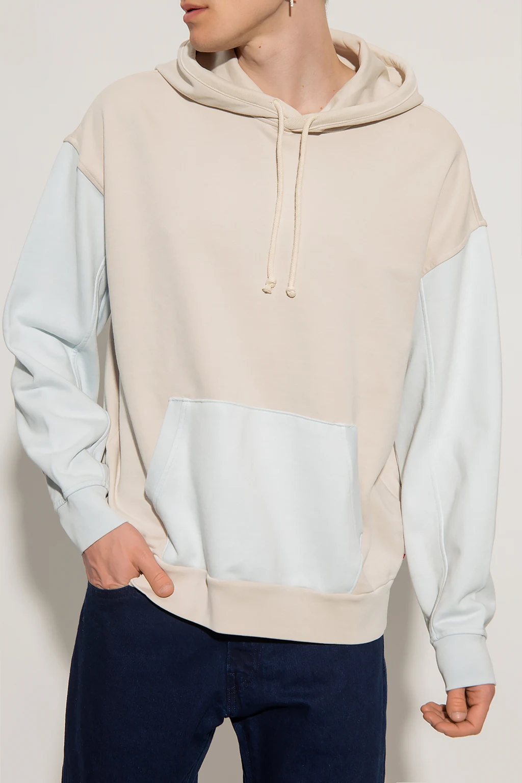 Blueish-beige sweatshirt with a drawcord-adjustable hood from Levi’s, the ‘WellThread™’ collection. Made of cotton jersey, this style features a kangaroo pocket and an elasticated bottom hem and cuffs.