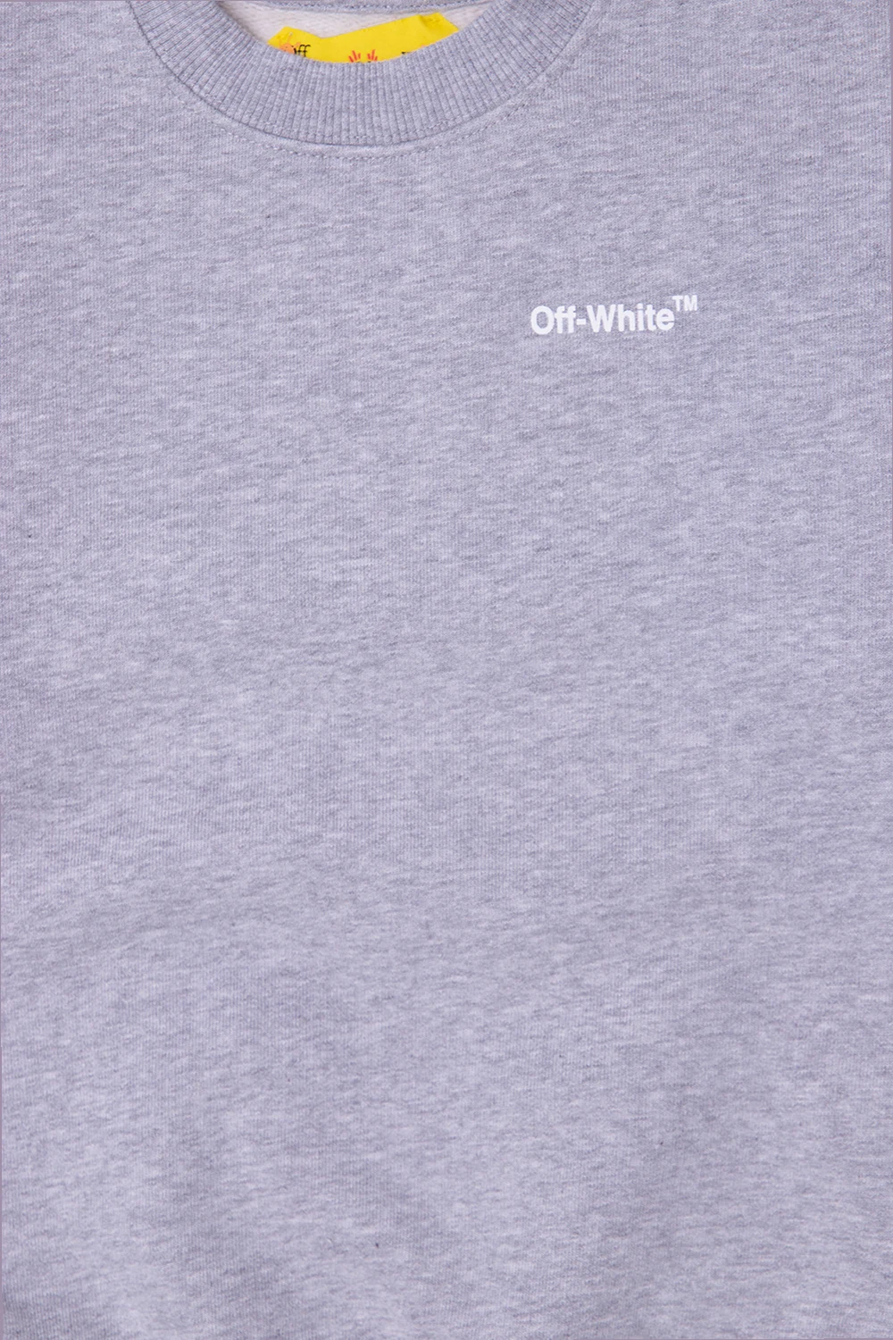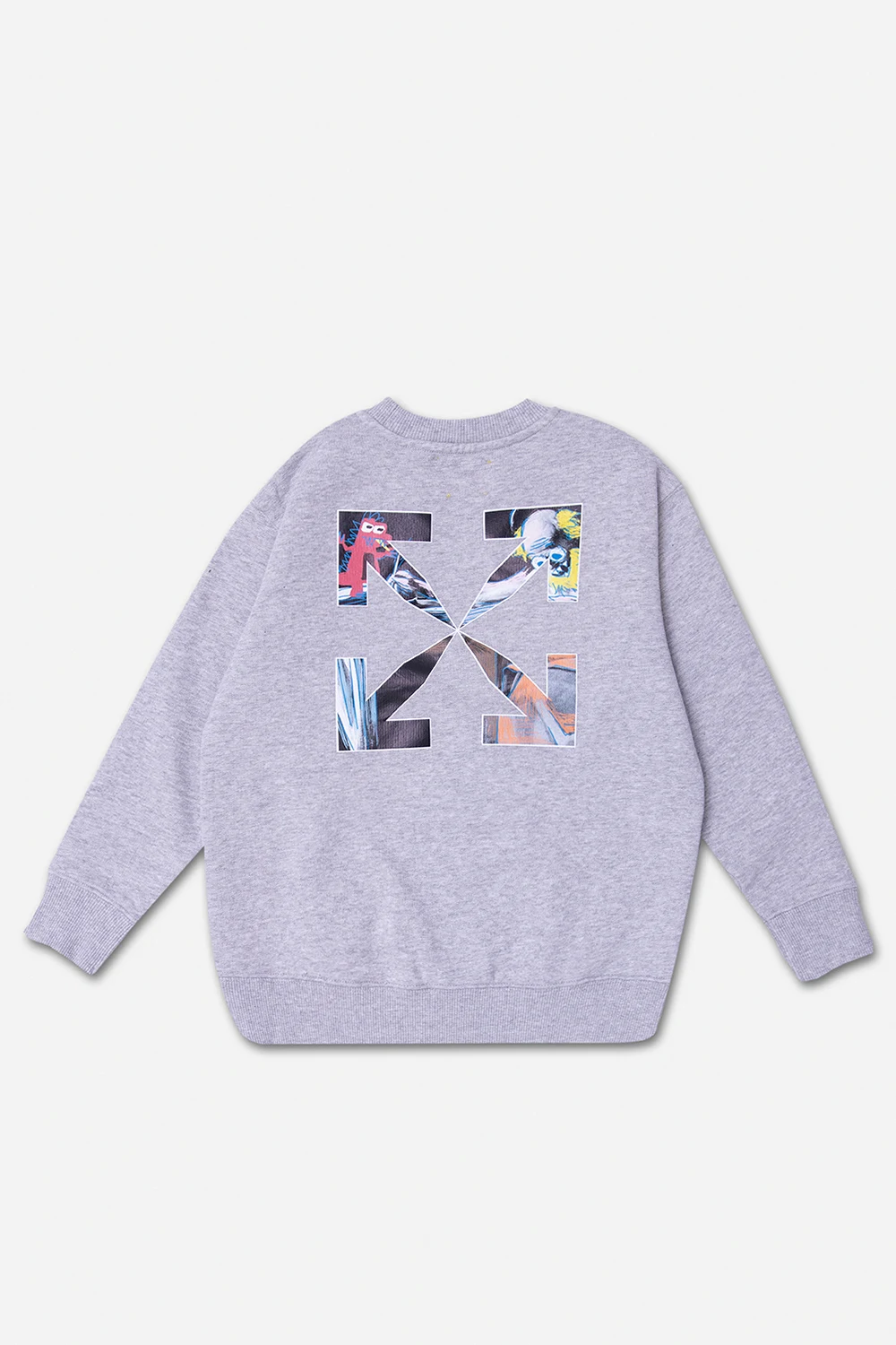 Grey crewneck sweatshirt from Off-White Kids. Crafted from cotton jersey, this style features a white logo on the front, a colourful graphic print at the back and ribbed trims on the collar, bottom hem and cuffs.