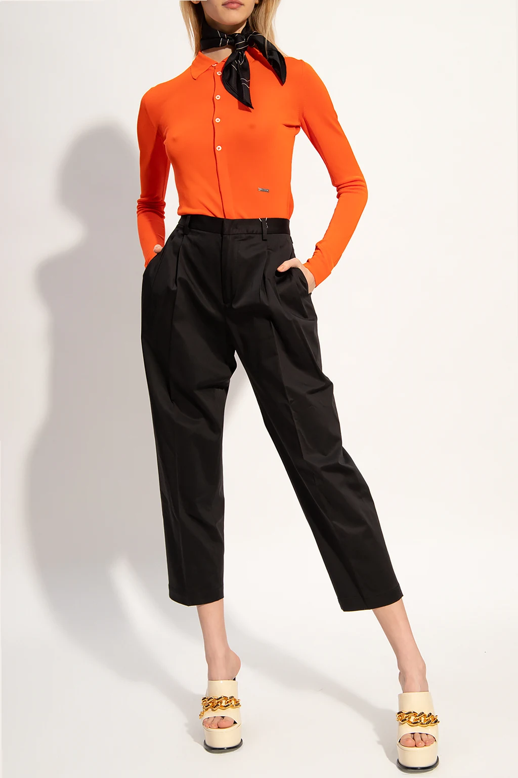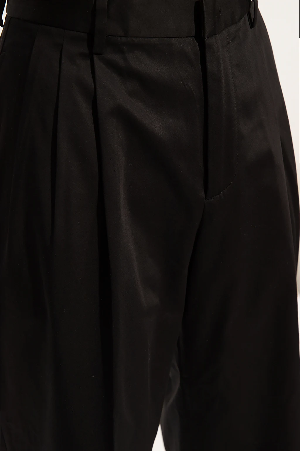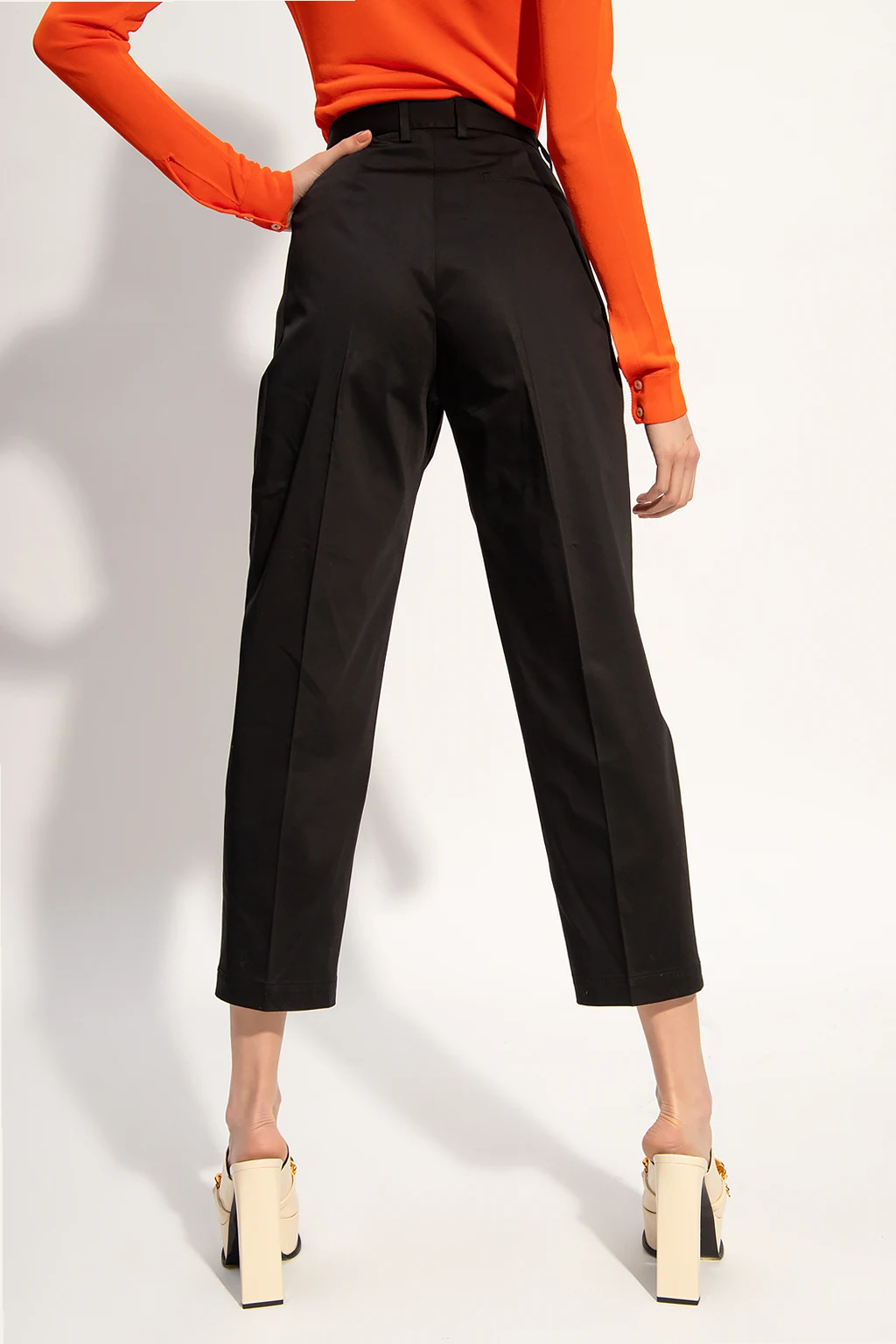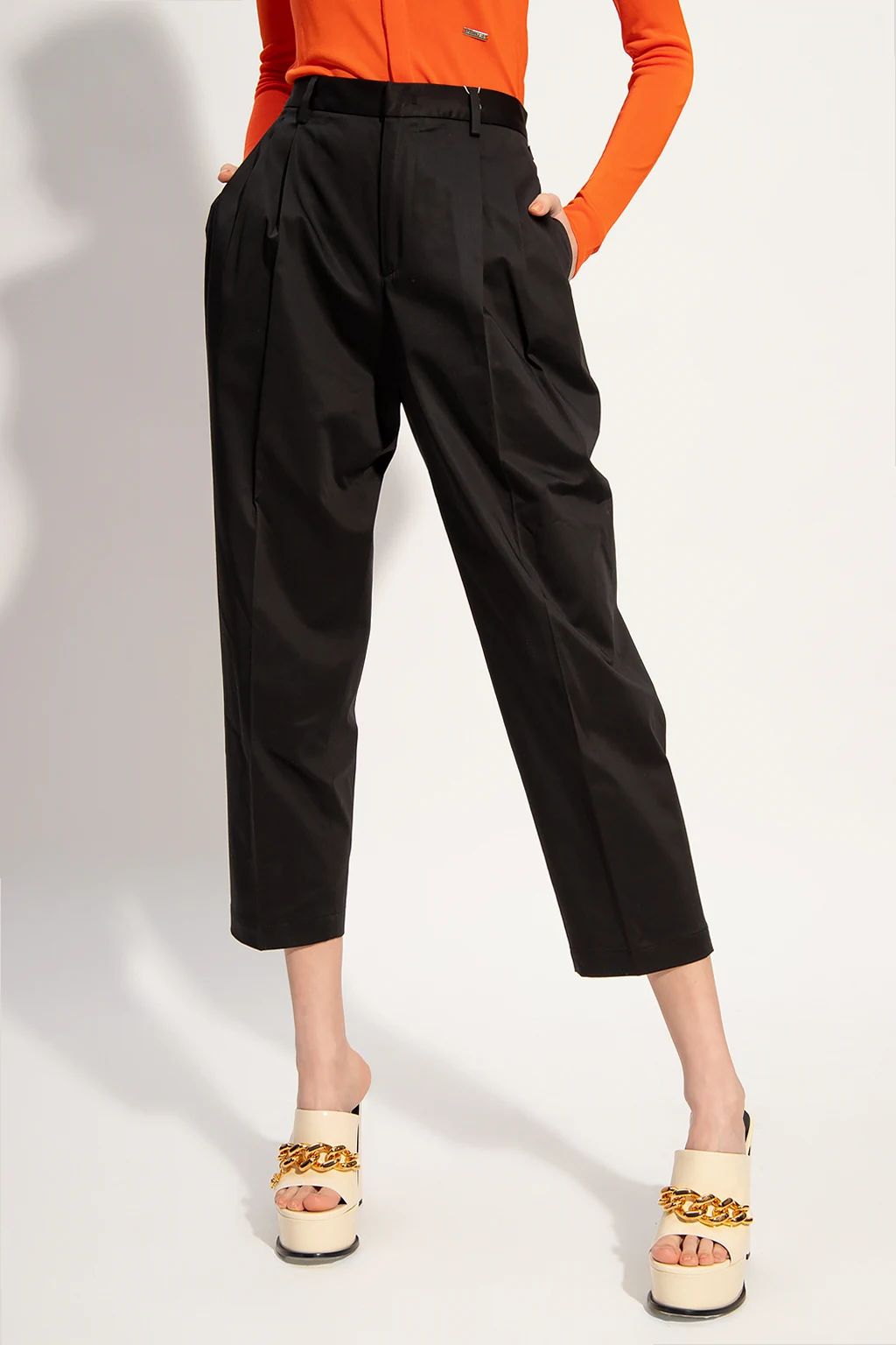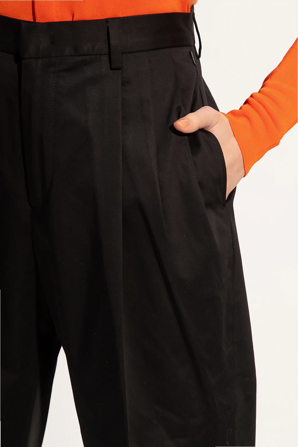 Black trousers with darts from Woolrich. Fastened with a zip and hook, this cotton-crafted pair falls down with slightly tapered legs and features two front pockets and one back pocket.