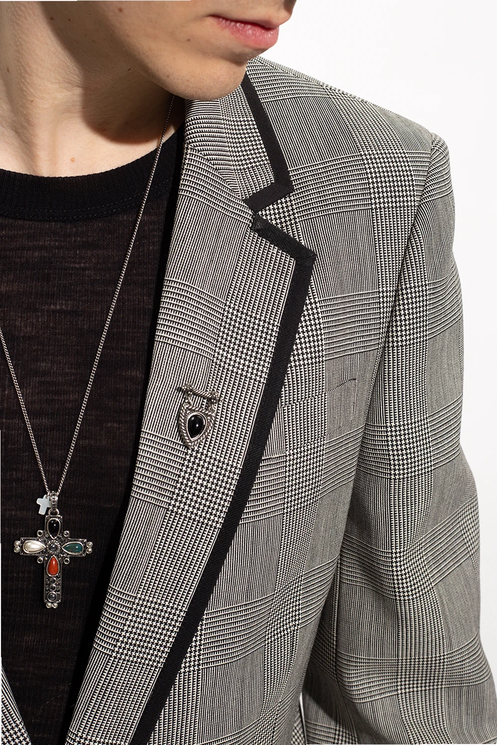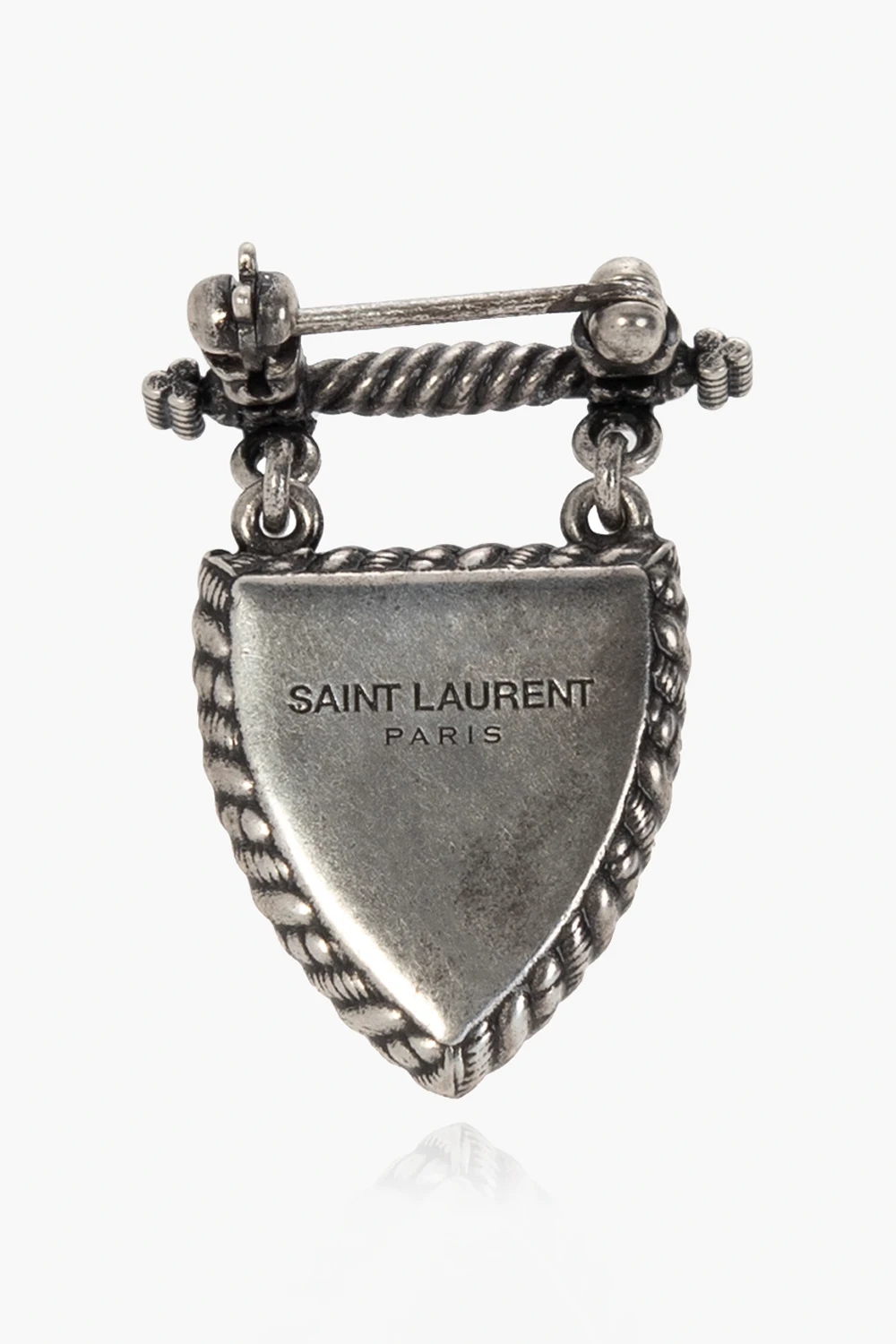 Brass brooch from Saint Laurent. This item features a crest application with a black gemstone.