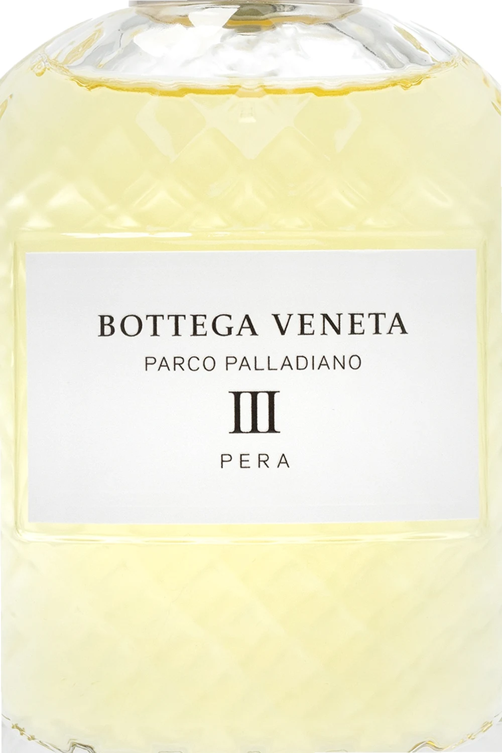 ‘Parco Palladiano III Pera’ eau de parfum from Bottega Veneta. The collection of Bottega Veneta fragrances draws inspiration from the idyllic Palladian gardens of the Veneto region of Italy, which showcase a vision of nature shaped through human influence and culture sublimated by nature. The villas with adjacent verdurous gardens, designed by the Renaissance architect Andrea Palladio in the 16th century, embody the dream of life where classical architecture blends seamlessly in a perfect harmony with the surrounding landscape. Each scent is composed of the finest raw materials that are being obtained from the strains grown in this region. Head notes: pear, mint, sage Heart notes: magnolia, rose, pink pepper Base notes: musk, vetiver
