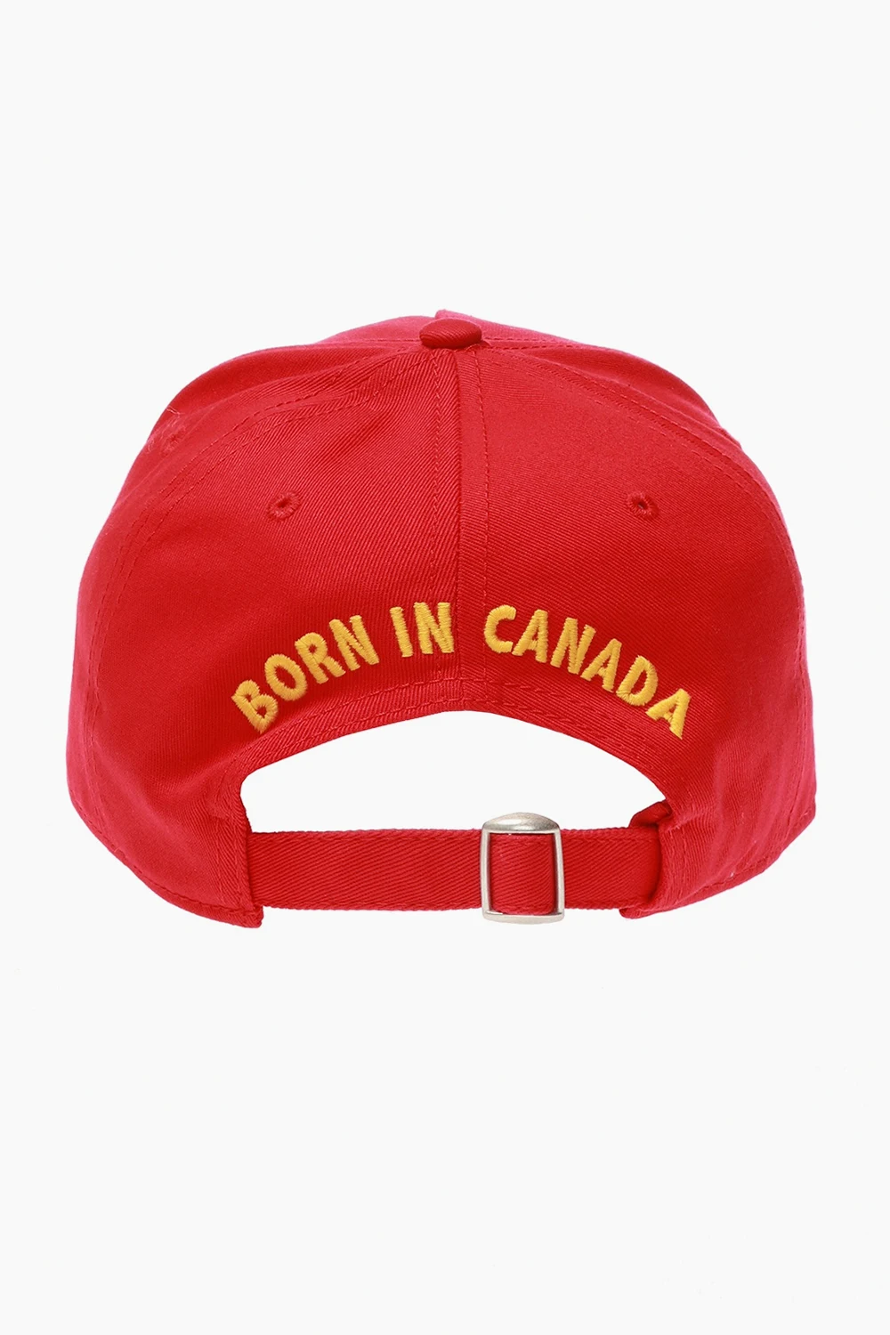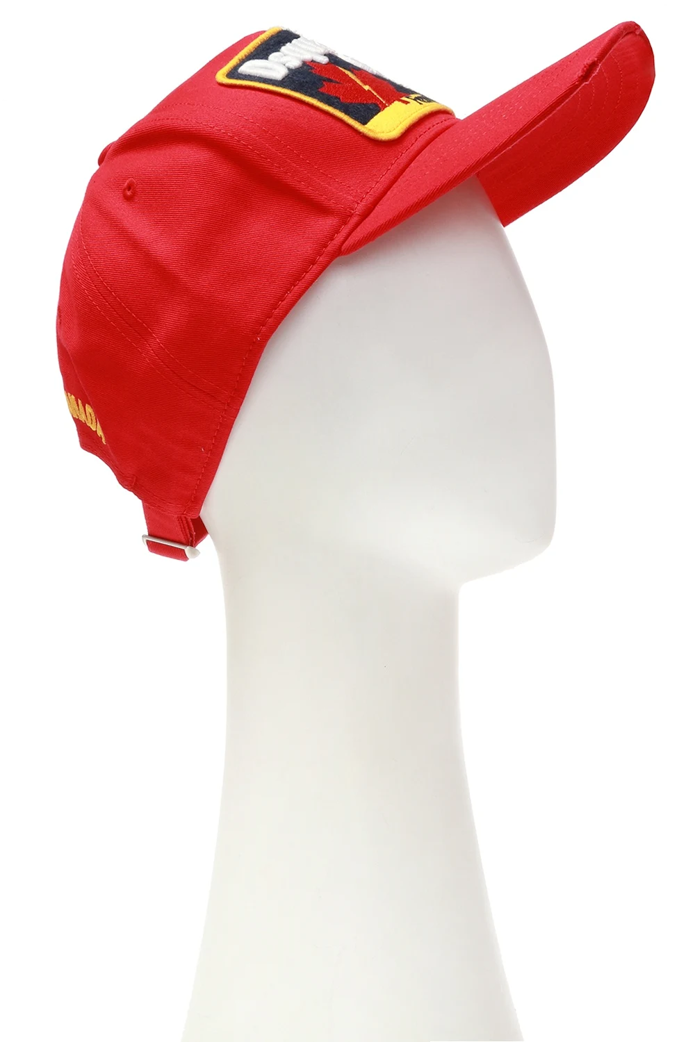Red baseball cap with a raw trim from Dsquared2. Made of cotton. Decorated with a colorful logo patch. Adjustable strap at the back.