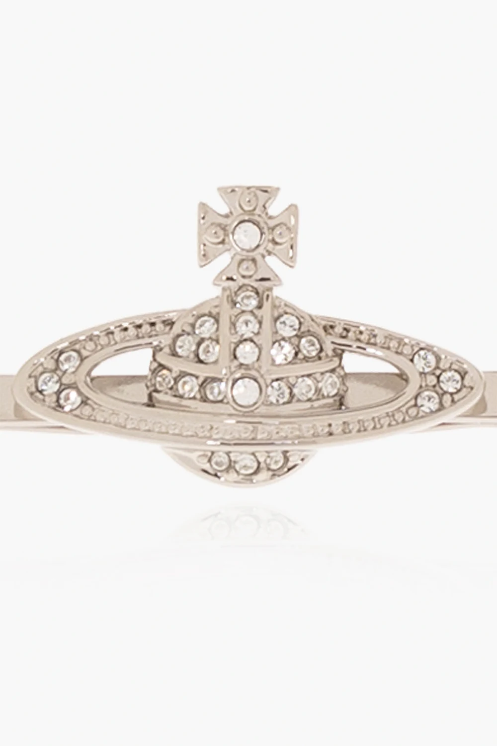 Silver-tone tie clip from Vivienne Westwood. Made of brass, this item features a logo detail embellished with crystals.