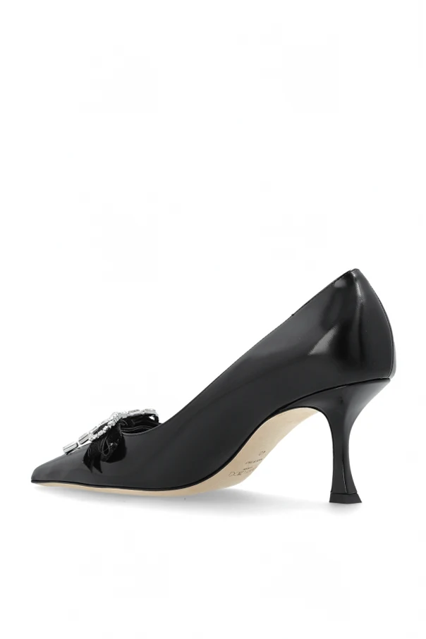 Elevate your ensemble with the Auria Heeled Pumps by Jimmy Choo, a masterful blend of classic allure and contemporary sophistication. Artfully crafted from exquisitely smooth patent leather, these pumps boast a sleek, pointed toe silhouette complemented by a modest yet refined kitten heel—perfectly proportioned for daylong elegance.