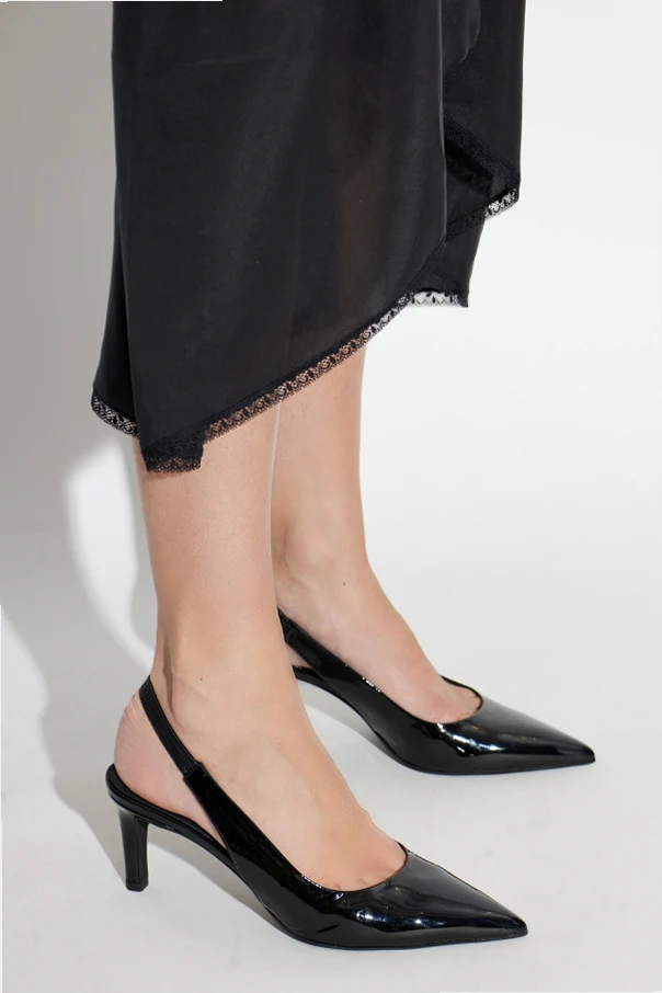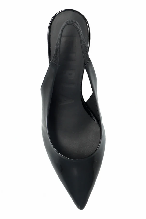 Exuding refined grace and timeless sophistication, the Furla Slingback Heeled Shoes captivate with their iconic silhouette . Meticulously crafted from lustrous patent leather, both the exterior and inner lining envelop your foot in exquisite comfort, while a supple blend of leather and rubber forms the sole for enduring poise.