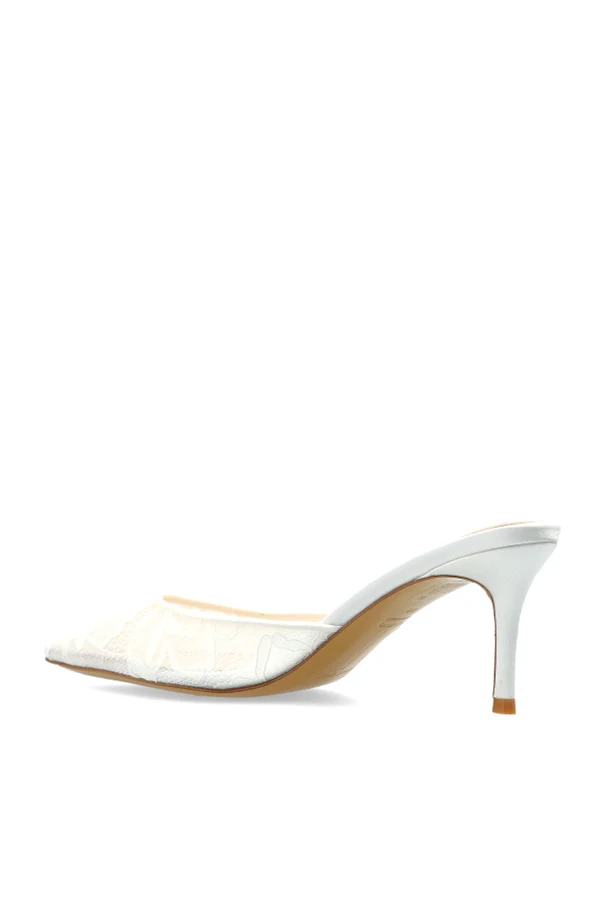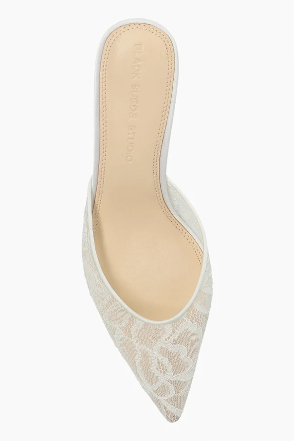 Introducing the ‘Jayla70’ Heeled Mules by Black Suede Studio —an exquisite expression of contemporary femininity. Rendered in pristine white , these mules showcase an elegantly sculpted, pointed toe and a slender mid-height stiletto heel, creating a silhouette of streamlined sophistication.