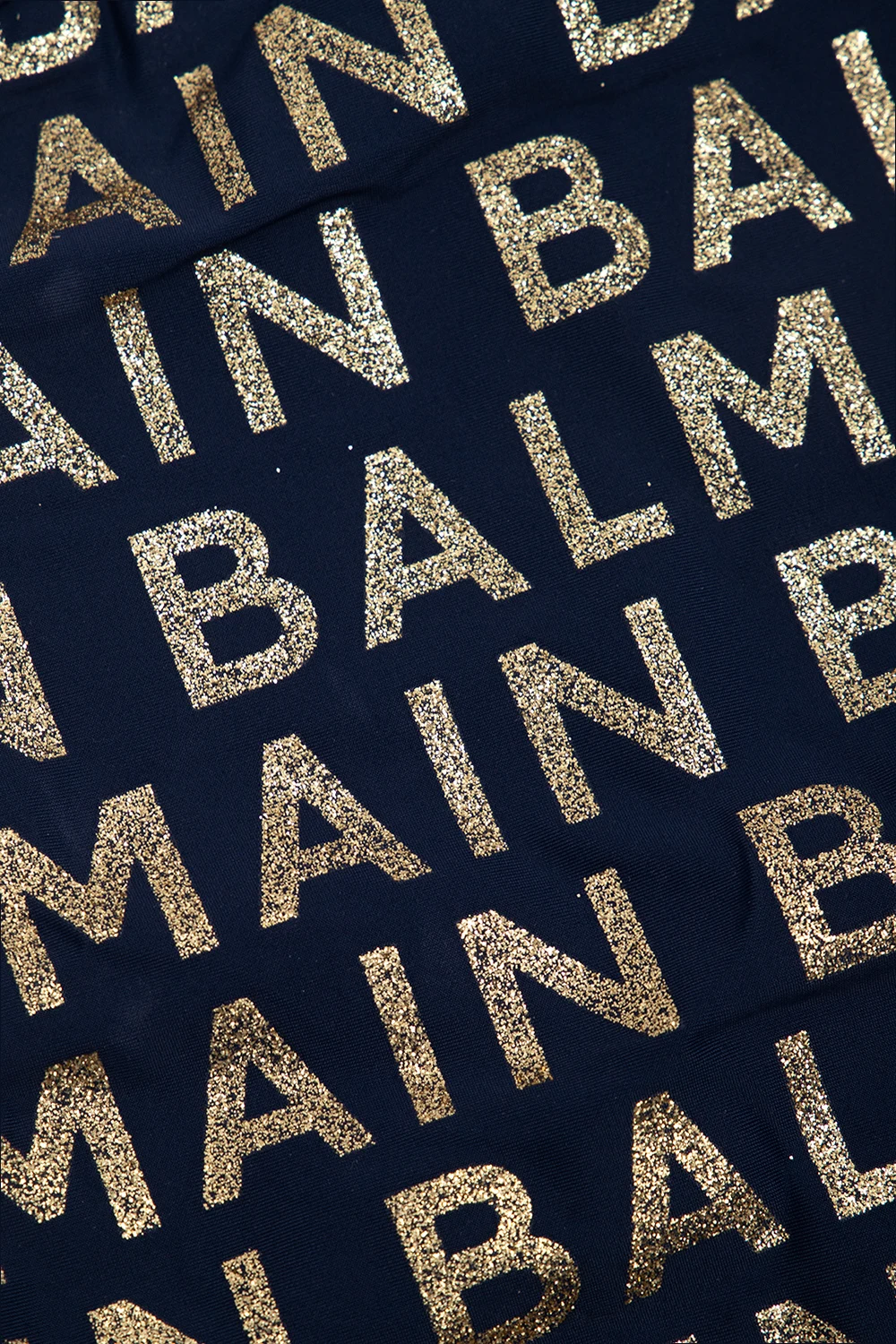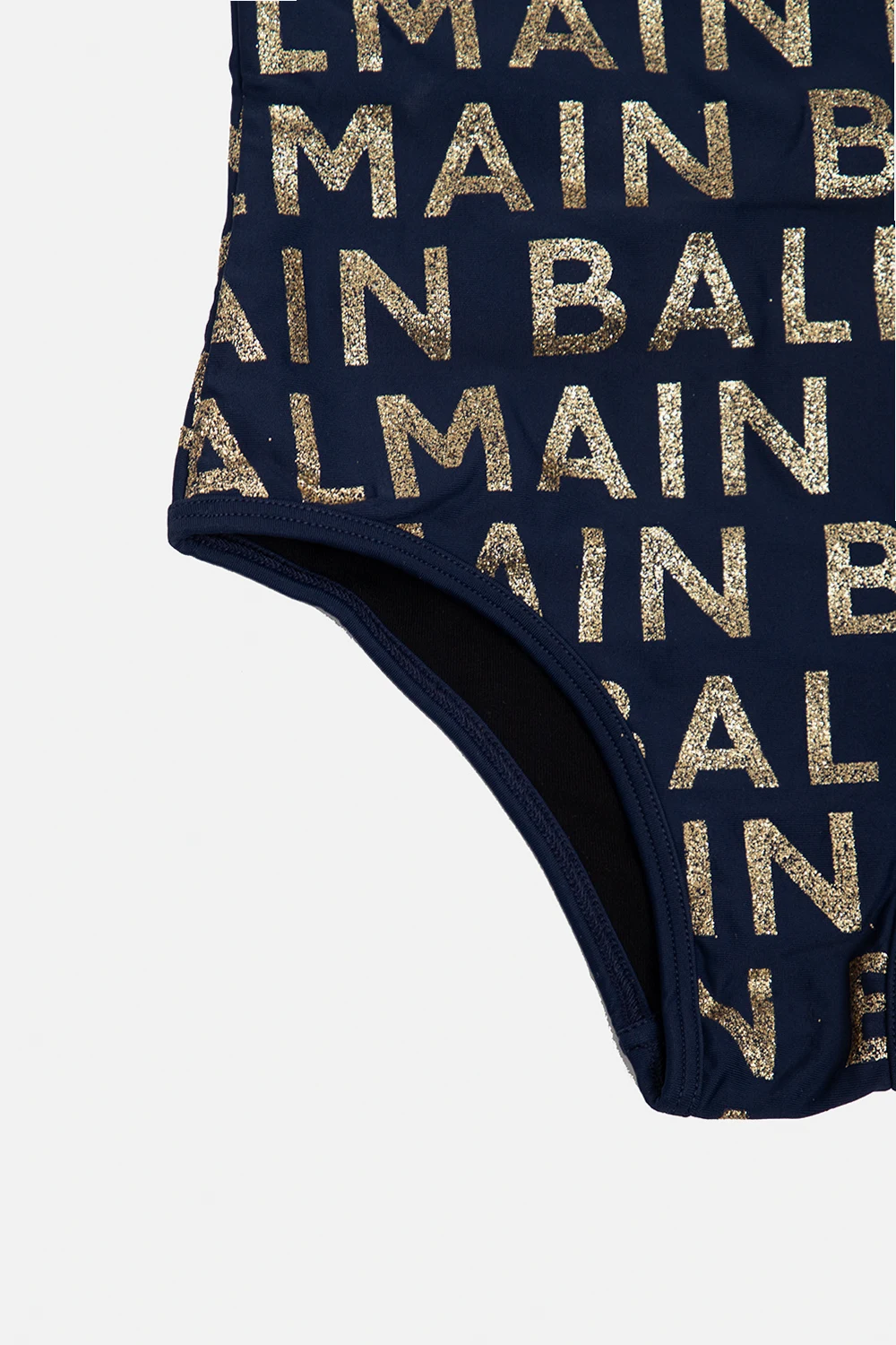 Navy blue one-piece swimsuit from Balmain Kids. Cut with a one-shoulder silhouette, this style showcases a printed glittery logo in gold-tone.