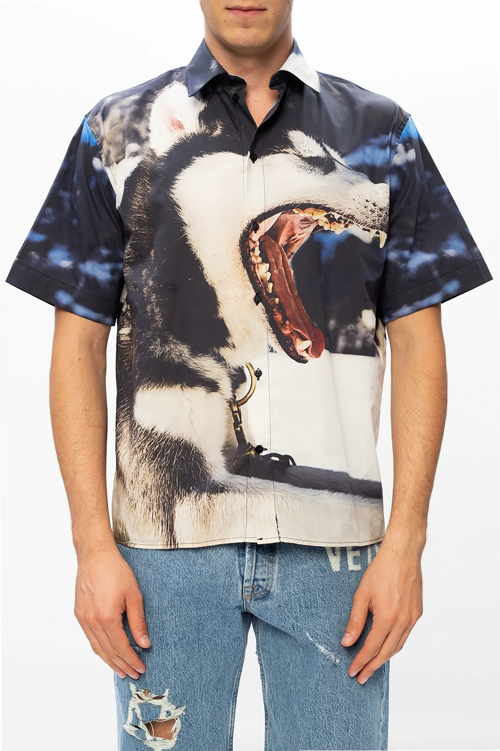 Multicoloured shirt from MSGM. Illustrated with a graphic print, this cotton-crafted style features button fastening and short sleeves.