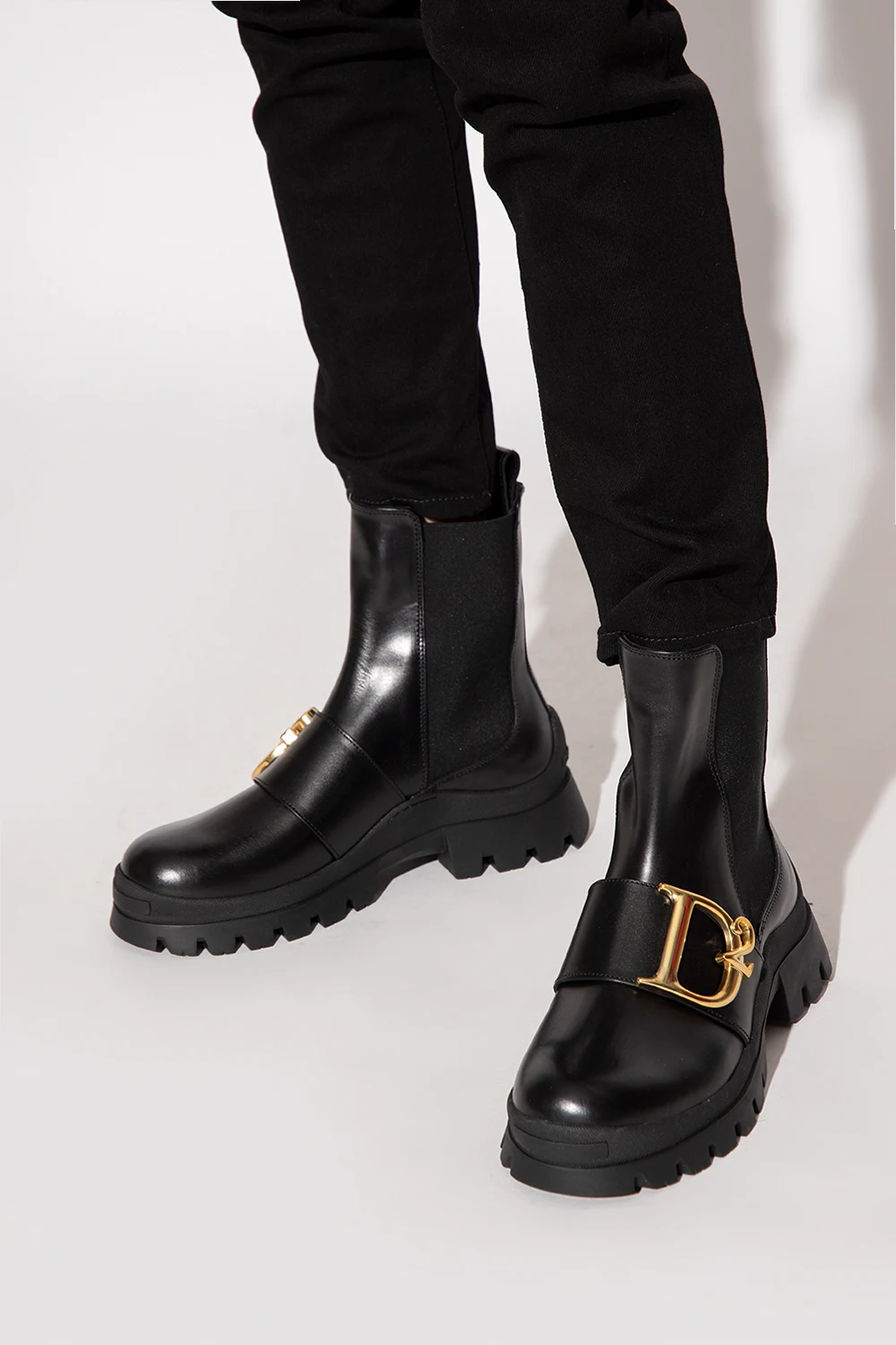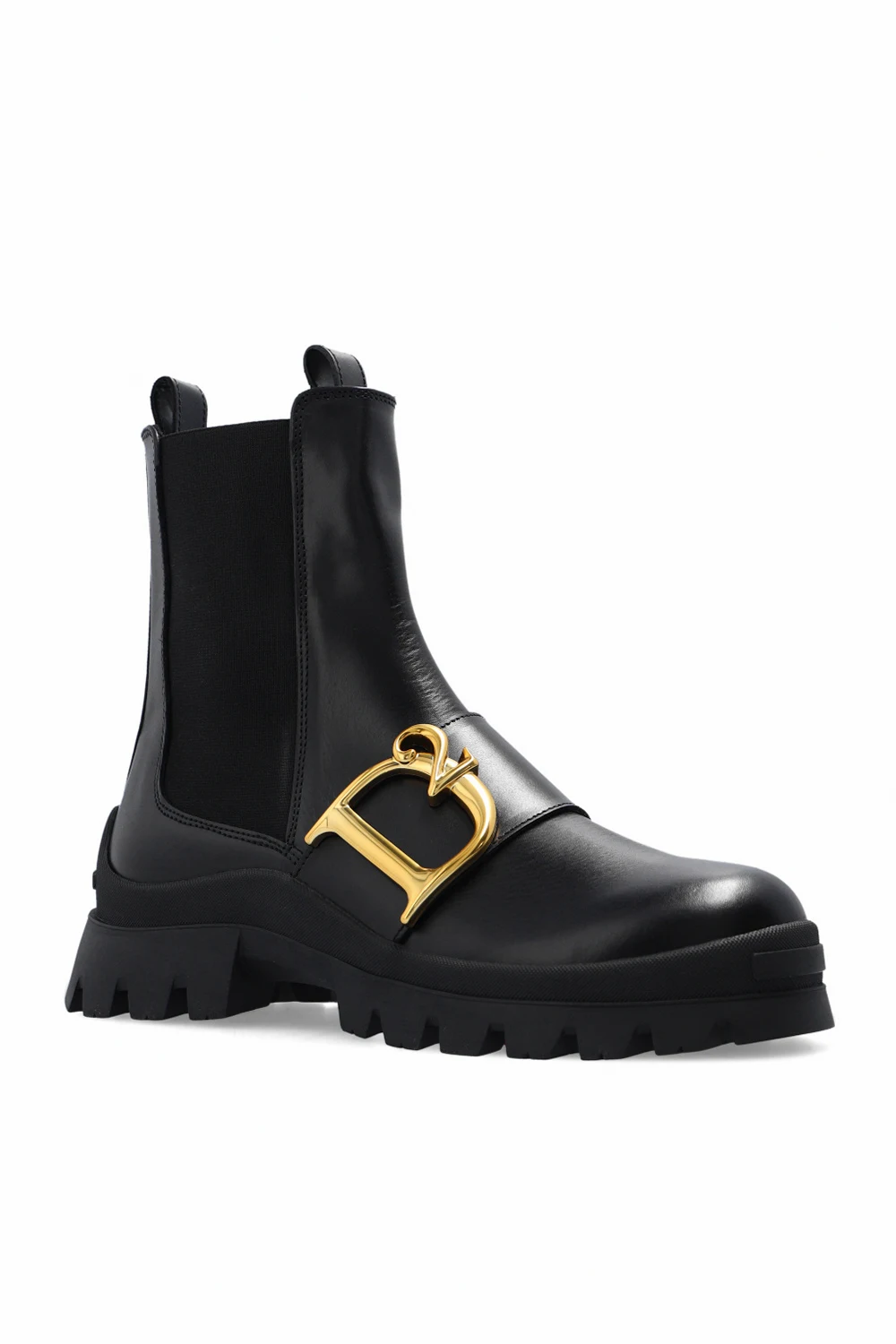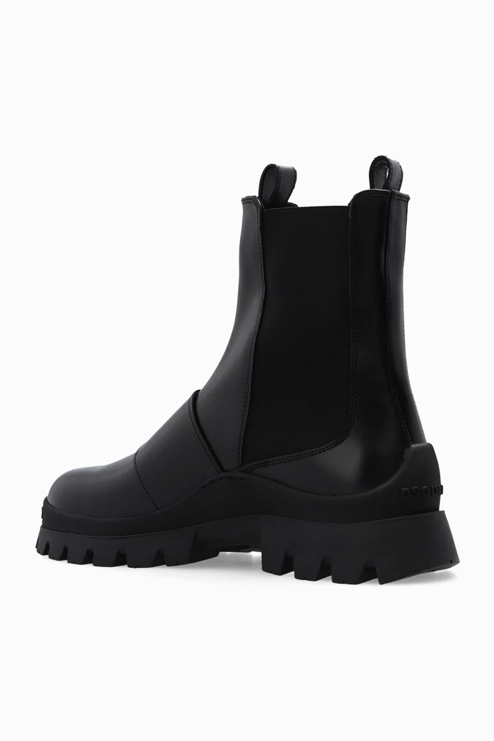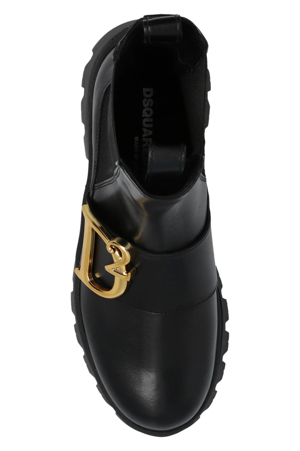 Black Chelsea boots from Dsquared2. Made of leather, this model sits on a black rubber sole and features elastic panels on the sides and a gold-tone logo application.