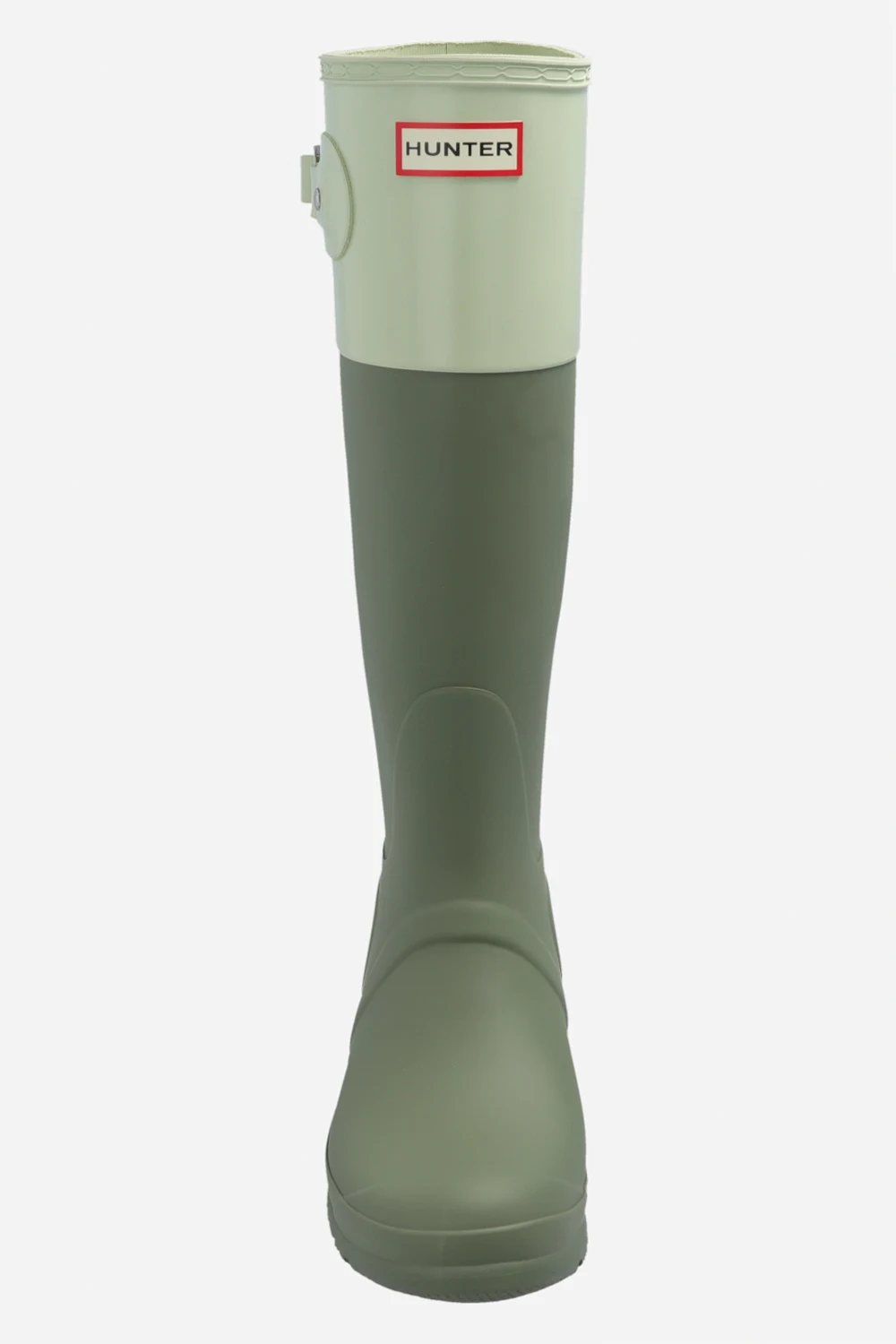 Green ‘Original Tall Colour Block’ waterproof rain boots from Hunter. Hand-crafted of FSC®-certified rubber with a matte finish, this pair features a strap with a silver-tone buckle, raised logo and rubber sole with Hunter Original tread pattern.