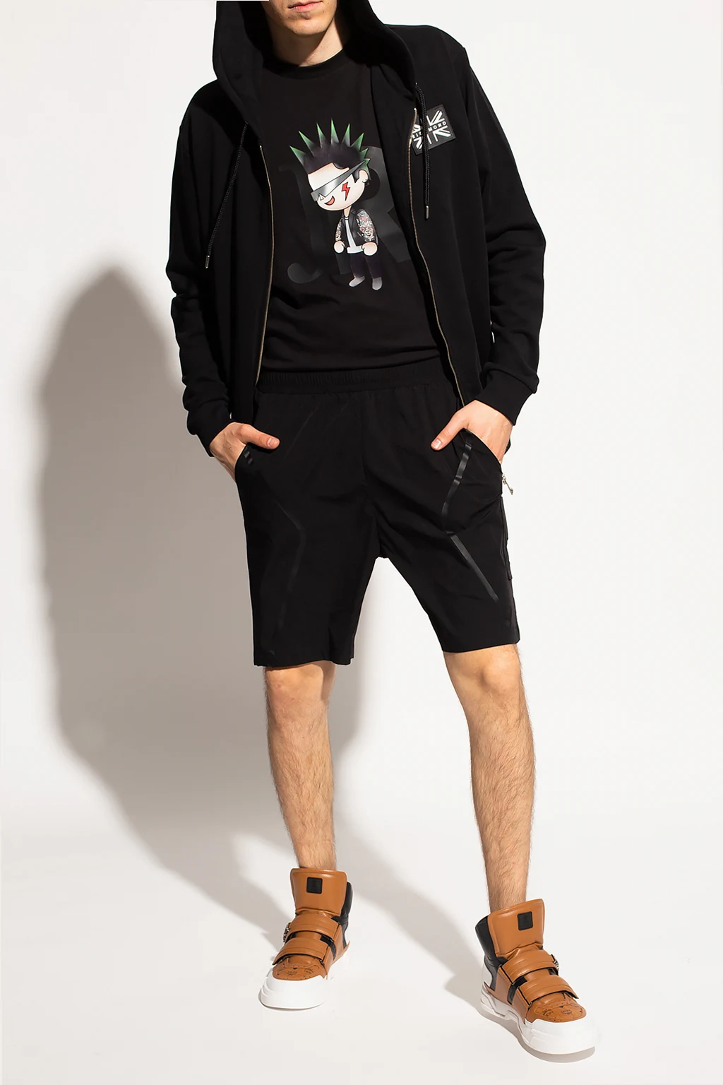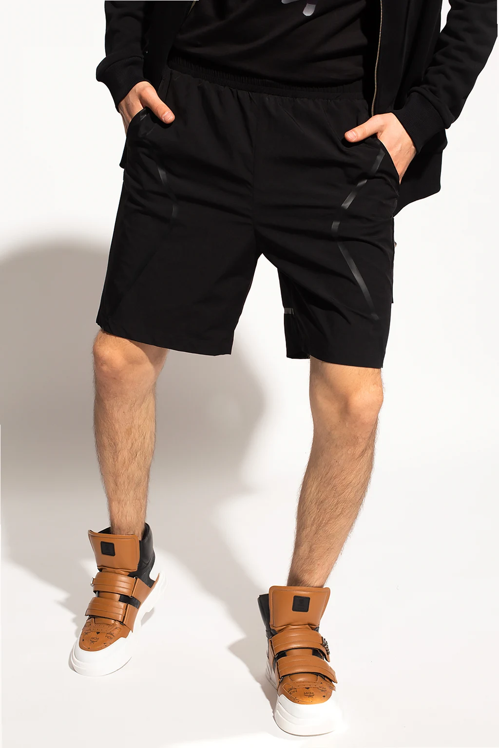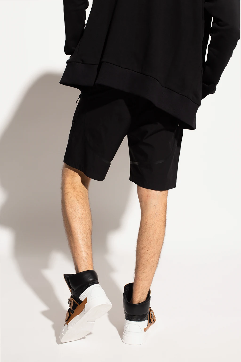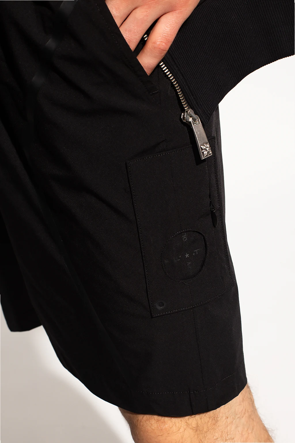 Black shorts with multiple pockets from A-Cold-Wall. Fastened with drawstrings, this design is decorated with a logo print.