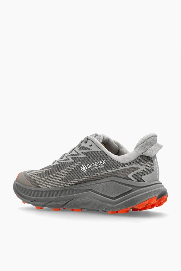 The upper, crafted from innovative technical mesh enhanced with durable synthetic overlays, is adorned with a subtle yet striking geometric pattern. The prominent GORE-TEX marking attests to the exceptional waterproofing and breathability, ensuring optimal performance in any weather. The bold, contrasting HOKA logo graces the side, signaling a commitment to precision and excellence. A meticulously designed rubber sole guarantees resilience, traction, and lasting comfort.