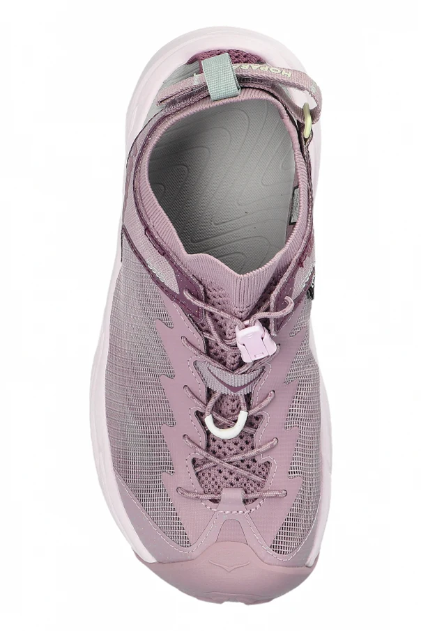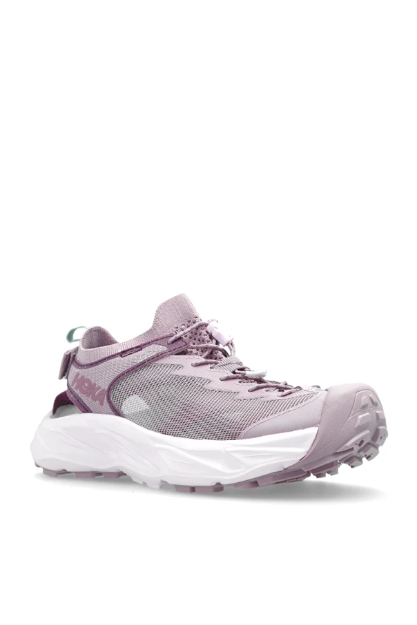 With a striking purple hue, the ‘HOPARA 2’ sports sneakers by HOKA encapsulate modern athletic sophistication. Designed exclusively for women, these sneakers present a solid, sporty profile with a soft, expressive sole line and an open, adjustable heel strap for a tailored fit. The silhouette is enhanced by dynamic mesh panels, delivering exceptional breathability and ensuring sustained comfort, even during high-intensity pursuits.