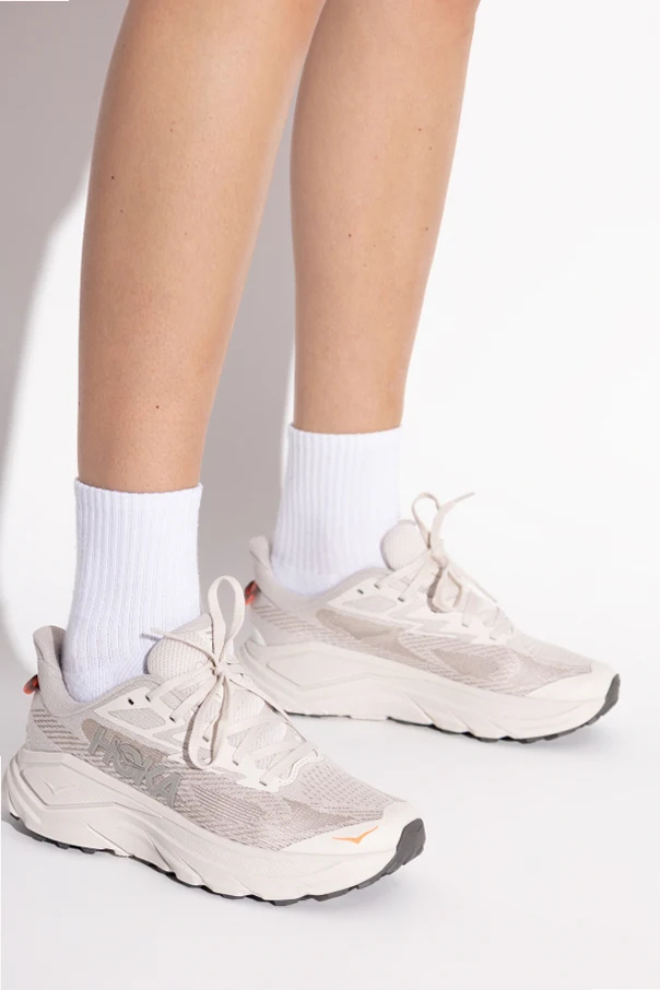 The CHALLENGER 8 sports sneakers by HOKA present a sophisticated fusion of performance and style. Clad in a refined gray hue, these women's running shoes feature a classic, dynamic silhouette with an elevated, robust sole that ensures excellent support. The anatomically contoured toe and heel enhance comfort and stability with every step.
