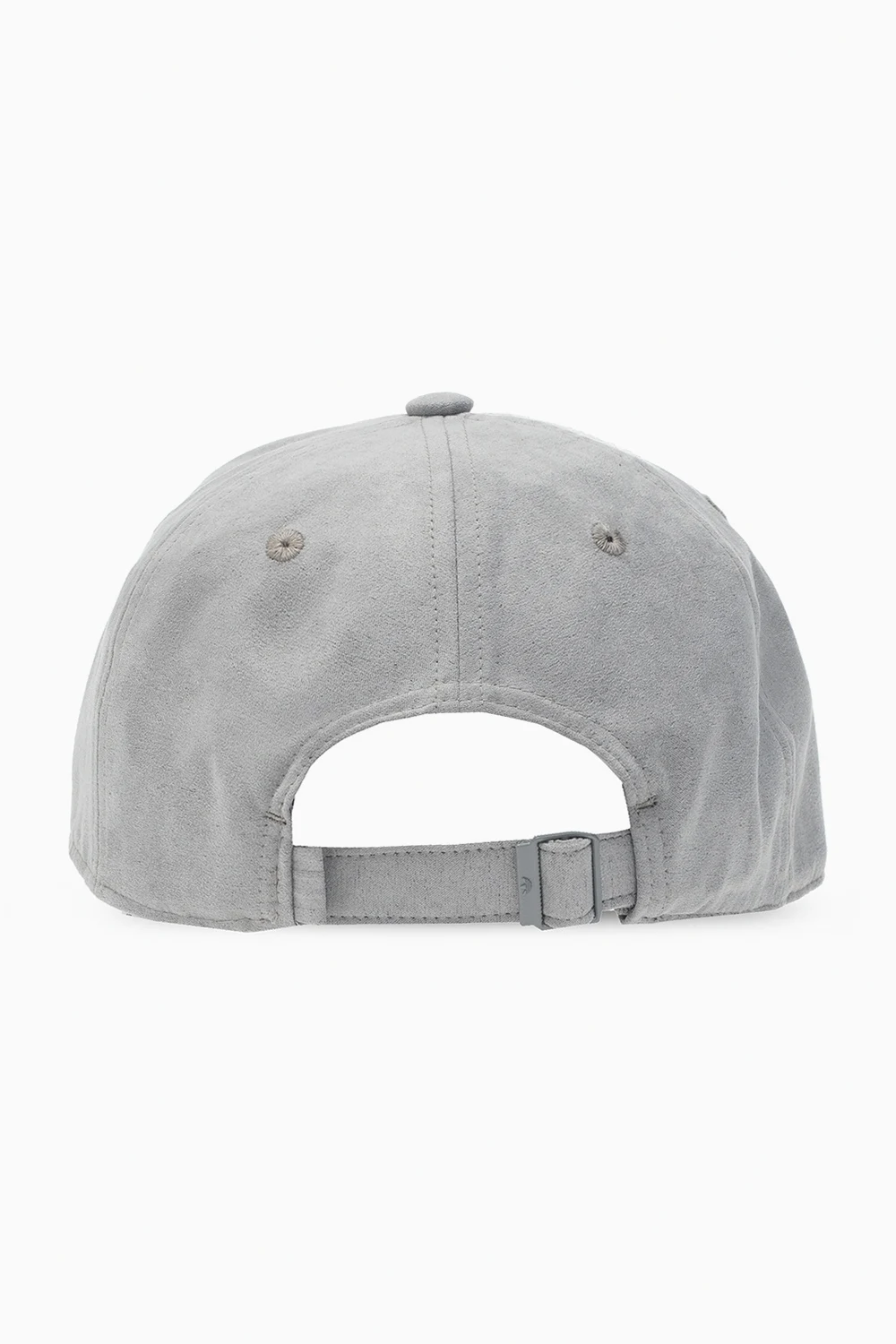 Grey baseball cap from ADIDAS Originals. Crafted from textured material, this piece of headwear features a trefoil logo patch and an adjustable buckle strap on the back.