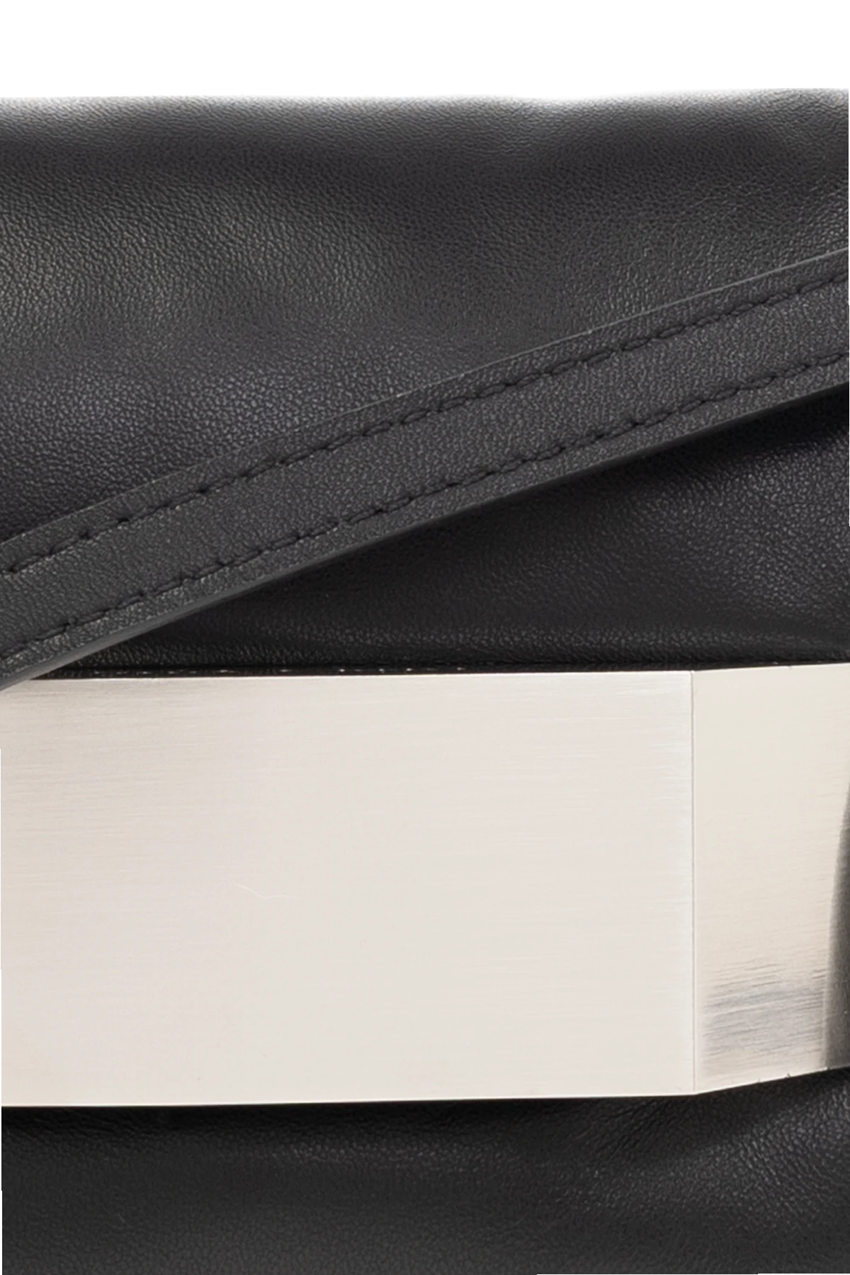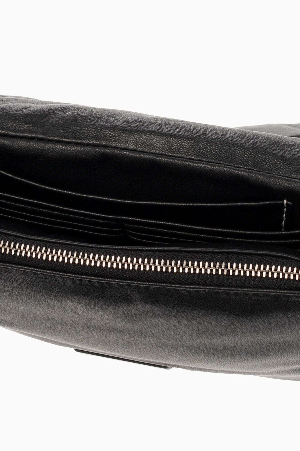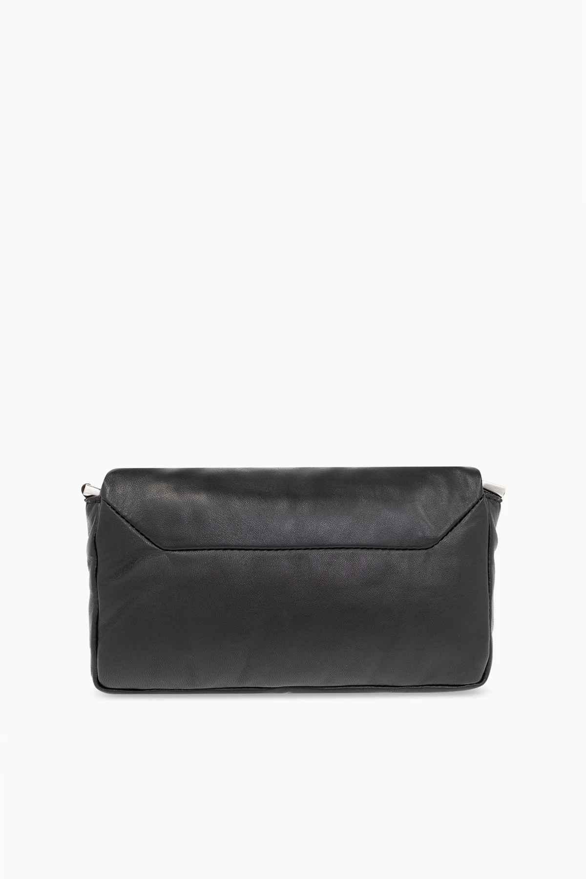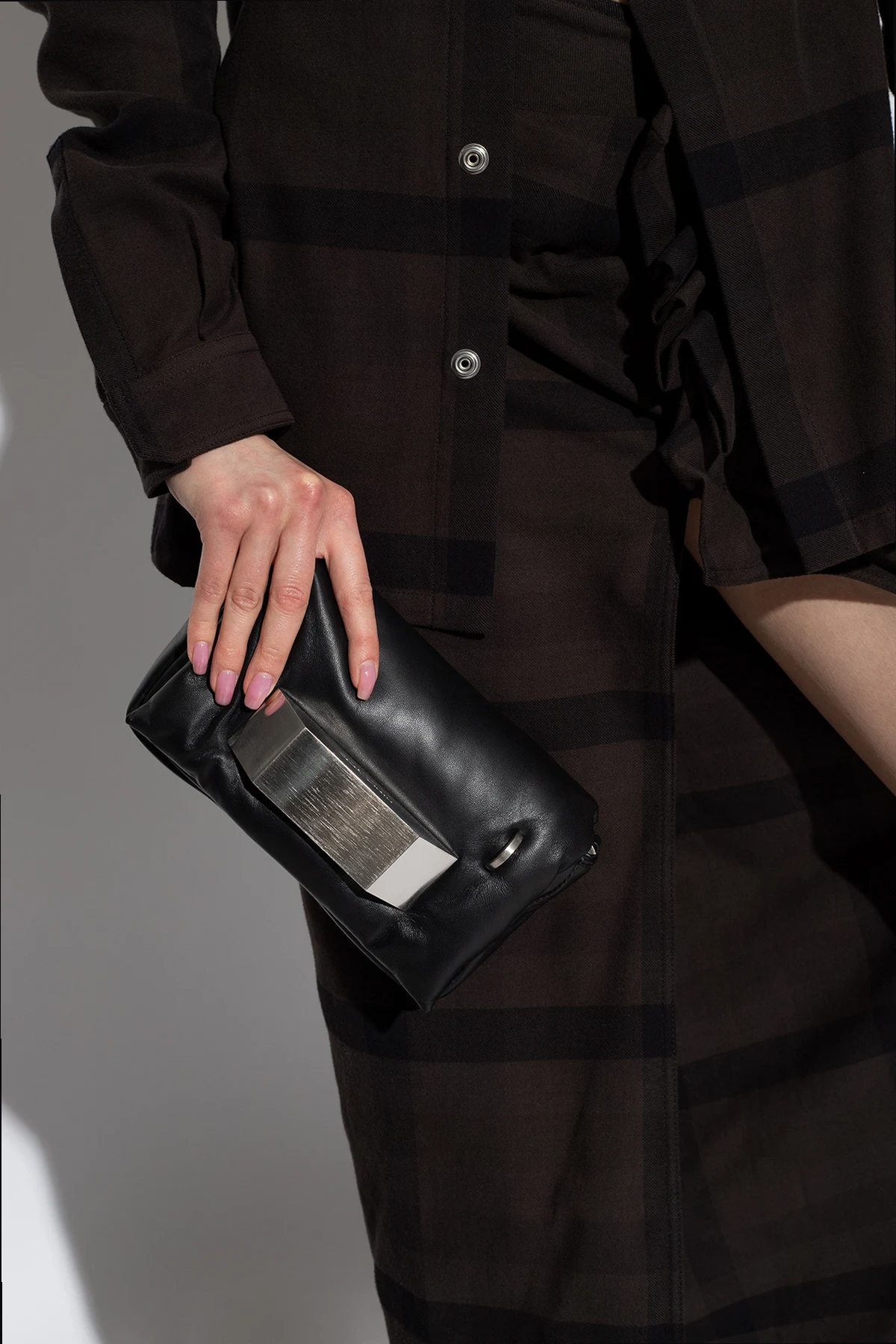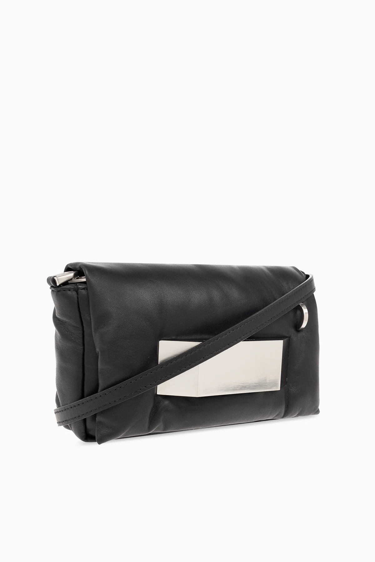 Black ‘Pillow Griffin’ shoulder bag from Rick Owens. Made from lamb leather, this design secures with a magnetic fastener and showcases a palladium bevel. It is complete with a detachable shoulder strap, silver-tone metal hardware and one internal compartment with six card slots, one slip pocket and one zip pocket.